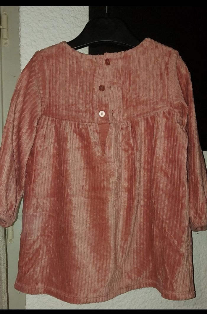 Jolie robe rose velours côtelé. Légèrement élastique.
