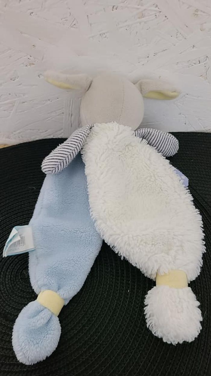 Doudou plat chien gris blanc bleu jaune Poupi BABY NAT - photo numéro 2