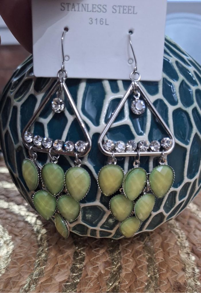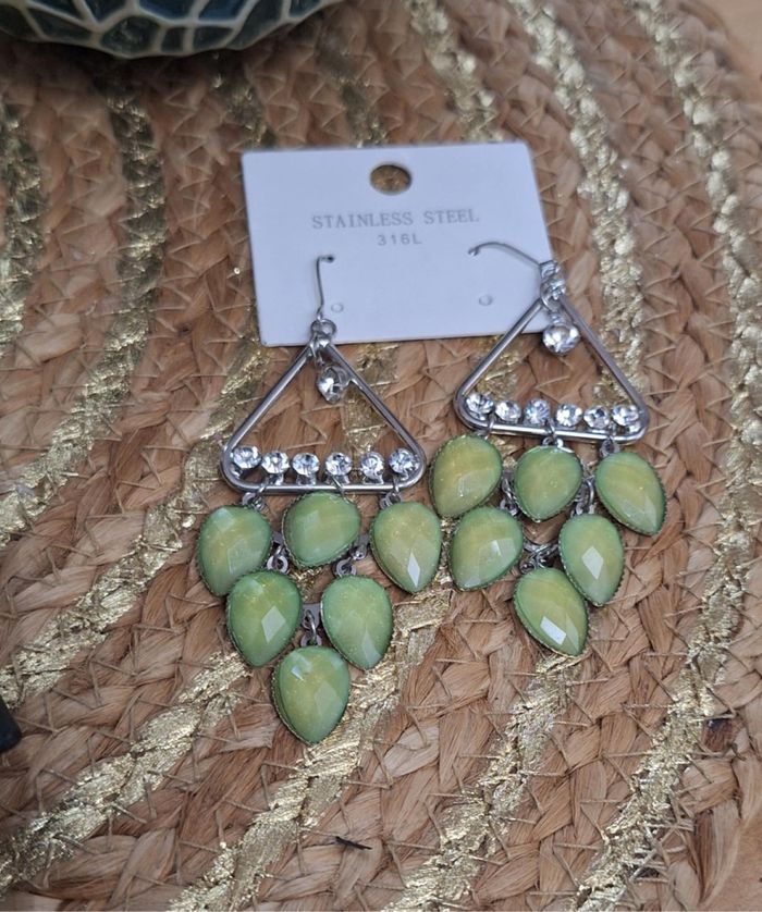 "AU COIN BOUTIQUE " BIJOUX N°249 boucle d oreille Fantaisie Pendante , strass Vert paillette Argenté Acier inoxydable Neuf 2,50€ #kelly_bijoux #kelly_aucoinboutique