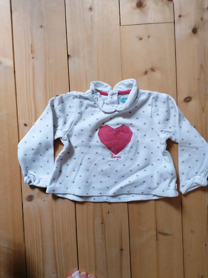 Pull léger col Claudine avec cœur brodé. Effet ample. Pressions dans le dos. Très bon état. Obaibi 18mois #hanna9889fille18mois