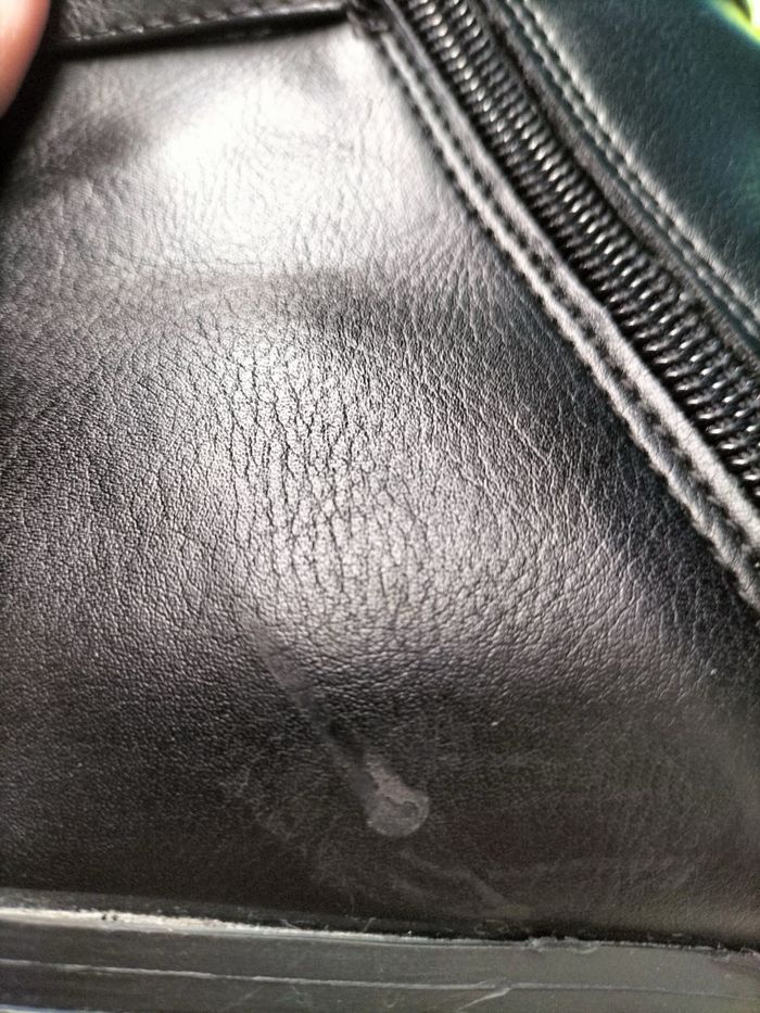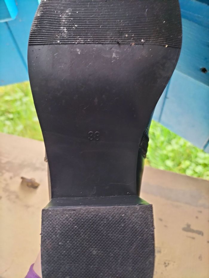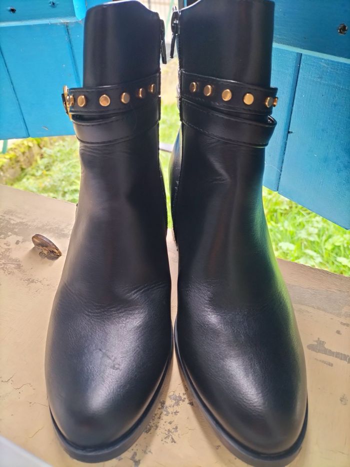 Paire de bottine servi juste pour essayer par une ado qui arrive pas à marché avec , essayer dans des cailloux se qui a occasionné un petit éclat pas énorme donc jamais servi seulement à essayage