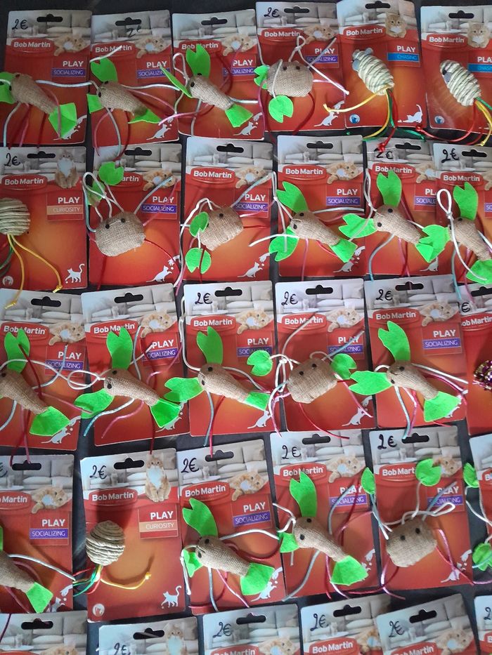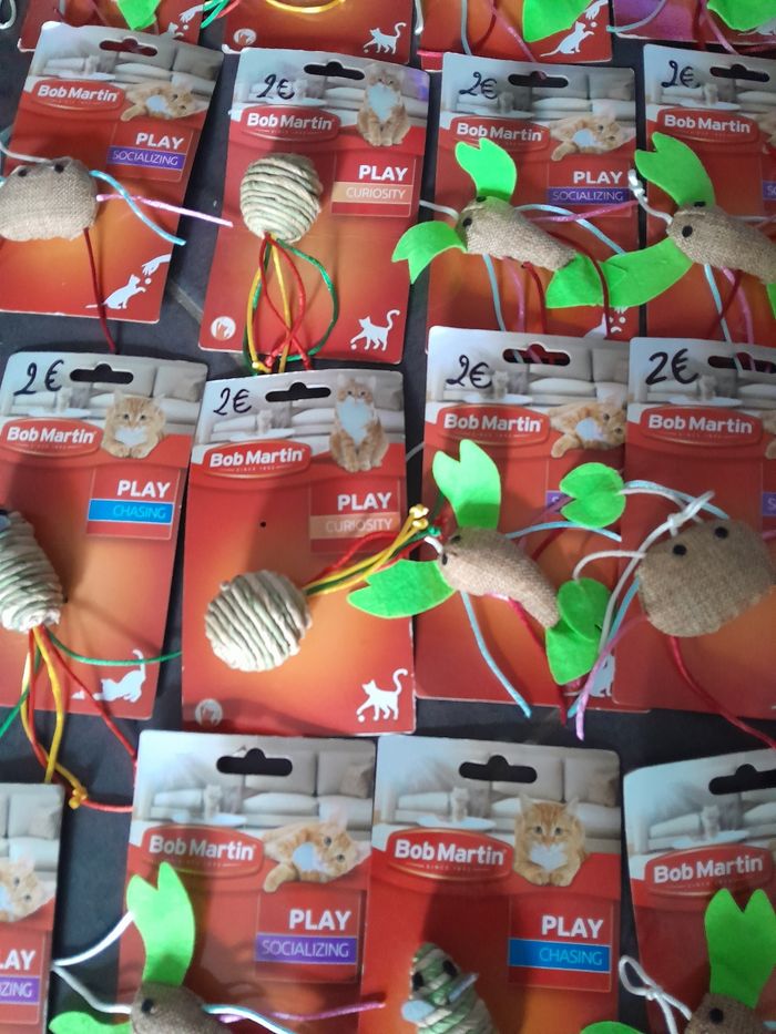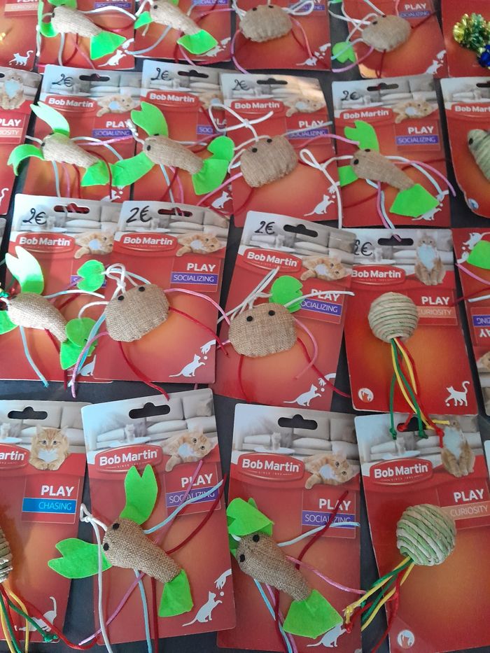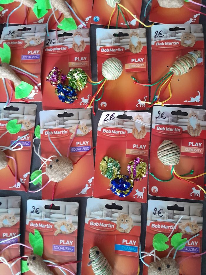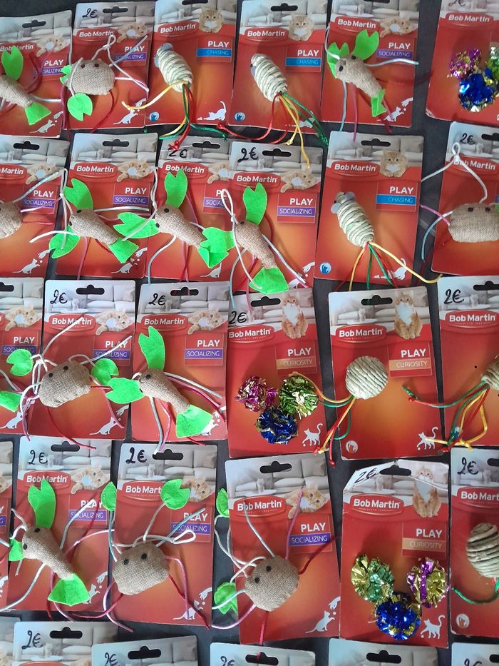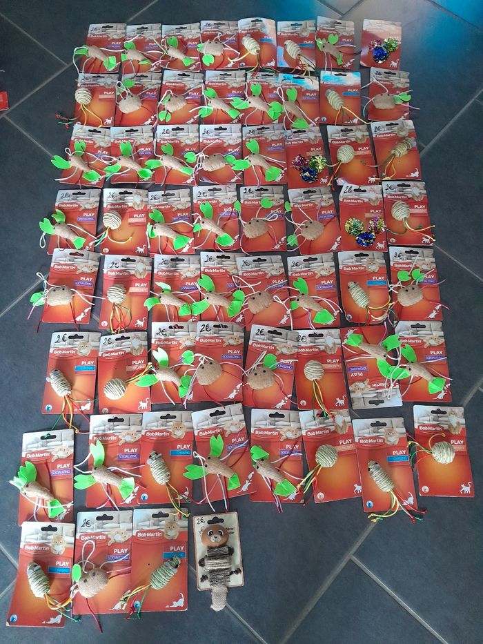Lot de 60 jouets chats 120euros le lot . Possible d'acheter à 2euros pièce n'hésitez pas à me le demander.