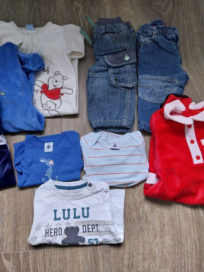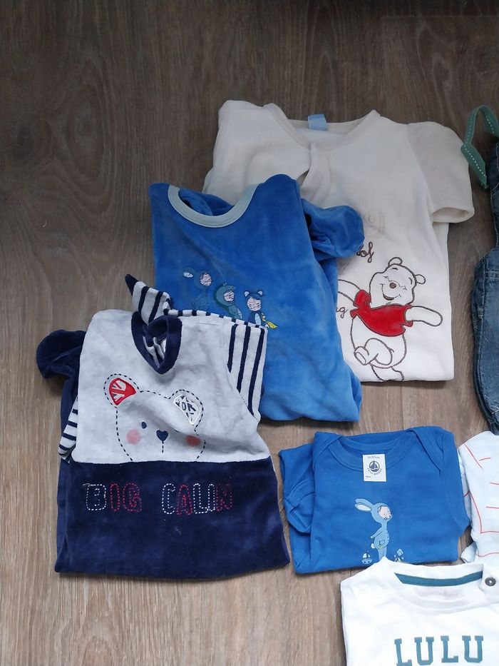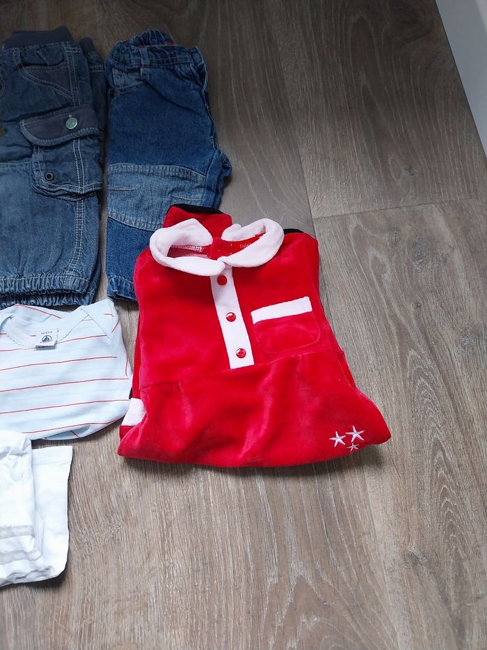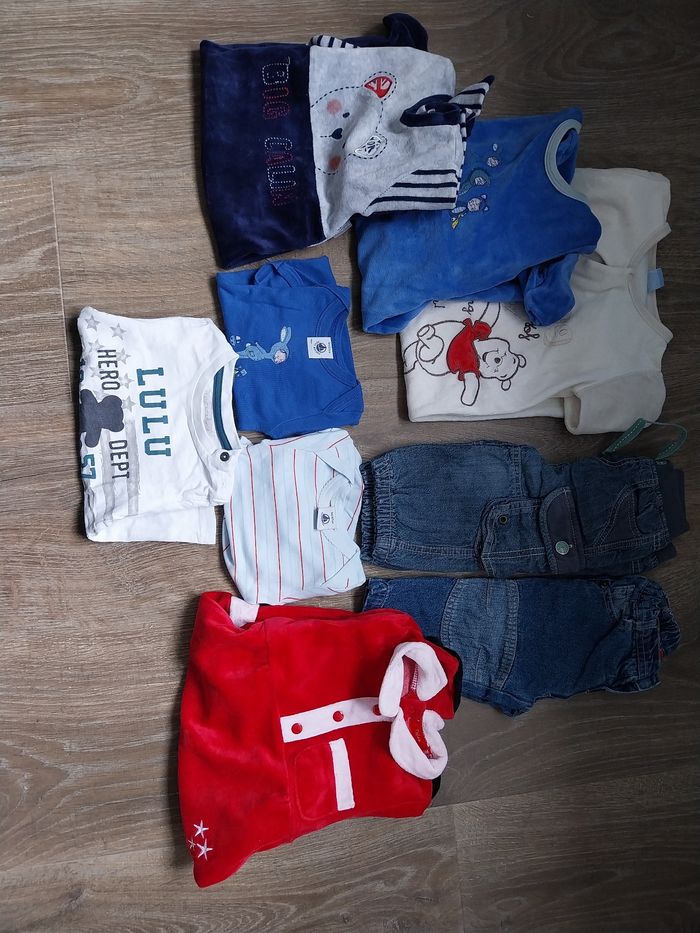 Bonjour, Je vends un lot de vêtements 6 mois comprenant : 3 pyjamas 2 pantalons (dont un 9 mois) 1 t-shirts manches longues 2 bodies manches longues 1 ensemble de Noël (9 mois)