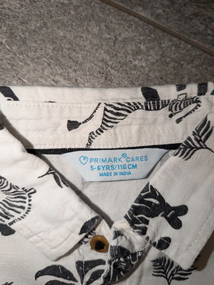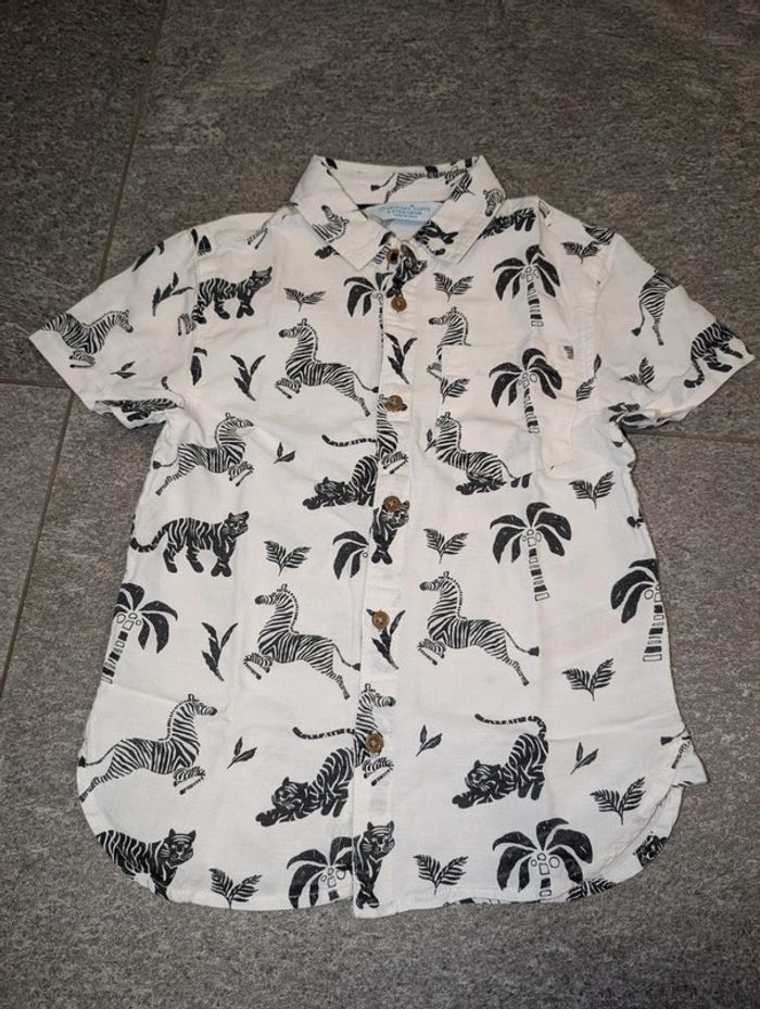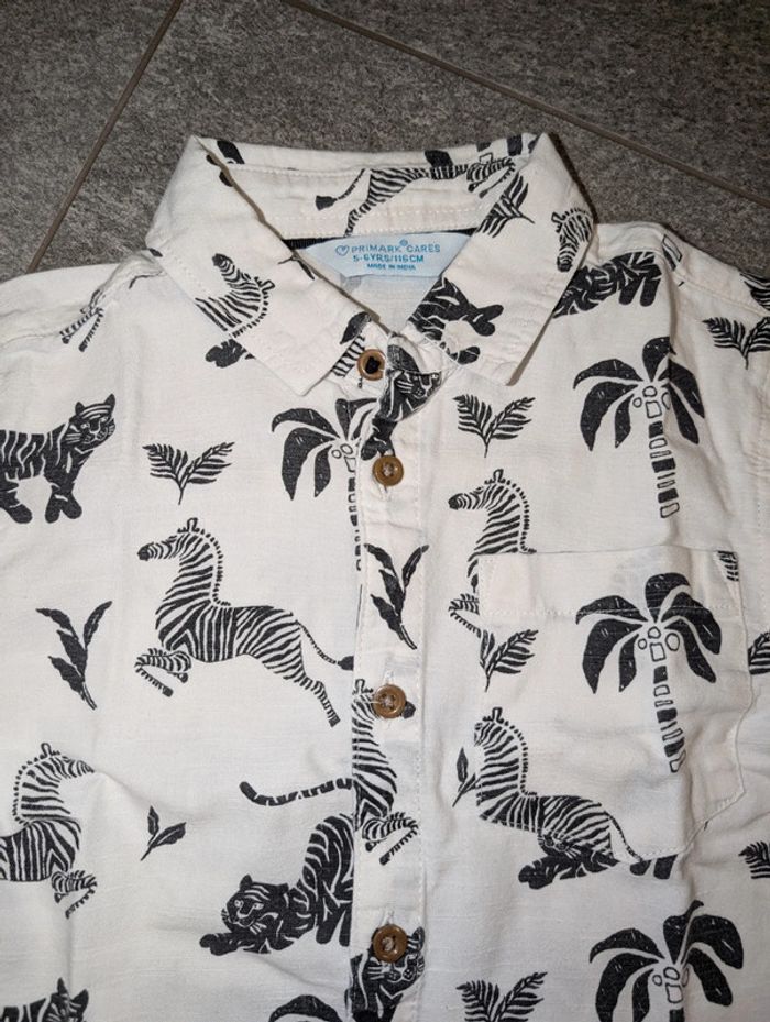 Chemise blanche légère Chic et habillée Motifs safari À peine portée comme neuve 116 cm 5 ans 6 ans #tiffanyostertag_garçon5ans #tiffanyostertag_garçon6ans