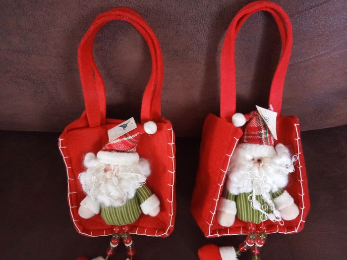 2 petits SACS en feutrine "Père-Noel" Dimensions: Hauteur 15,7cm - Longueur 15,2cm - Largeur 8,5cm Idéal pour y glisser quelques petites confiseries, petits cadeaux... Sacs Neufs encore étiquetés (Vente possible à l'unité au prix de 5€)