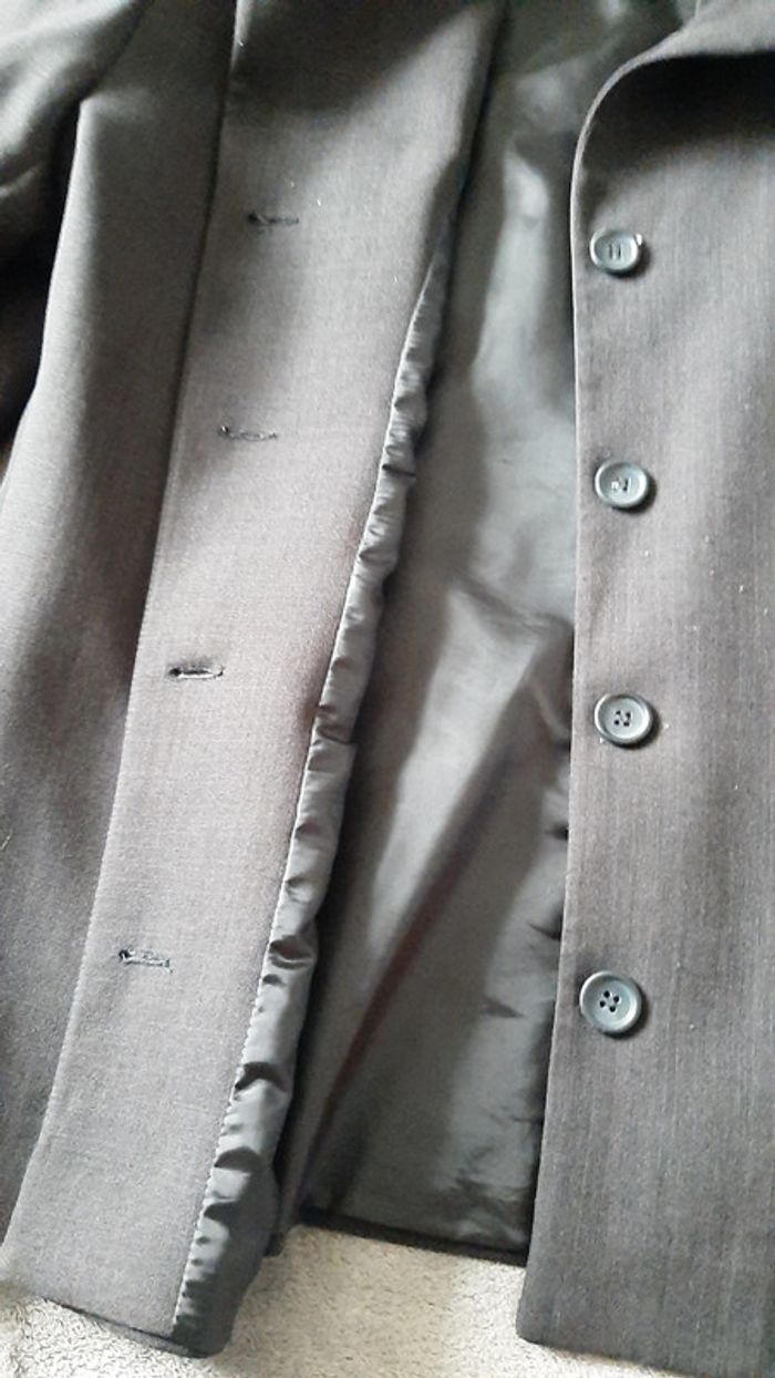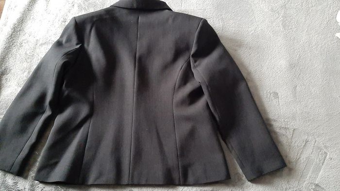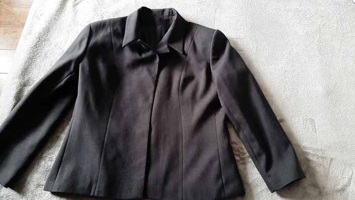 blazer doublé fermeture invisible, 4 boutons, petites épaulettes, 100% polyester, taille 46, couleur gris anthracite, jamais porté