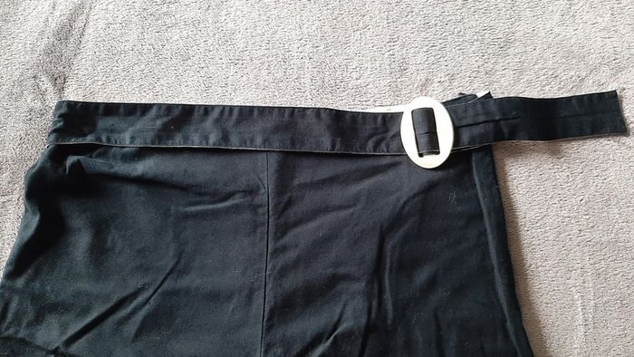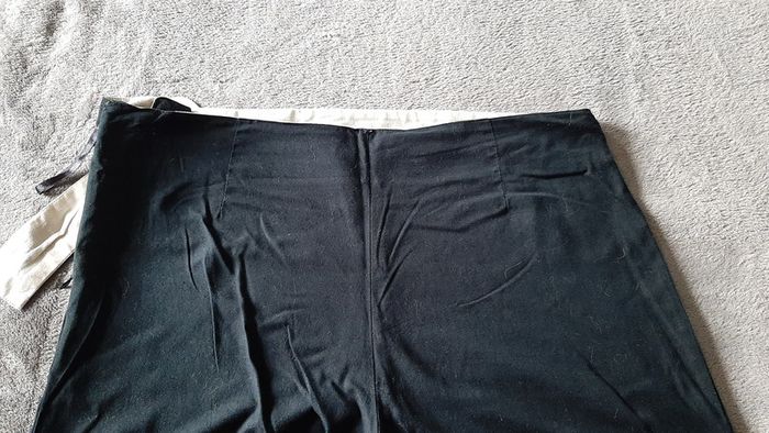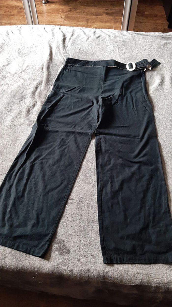 pantalon été ventre plat, fermé par zip + bouton sur le coté + ceinture intégrée, jambe large, 85% coton +15% lin, couleur noir, taille 42, marque Tout simplement, porté 2 fois