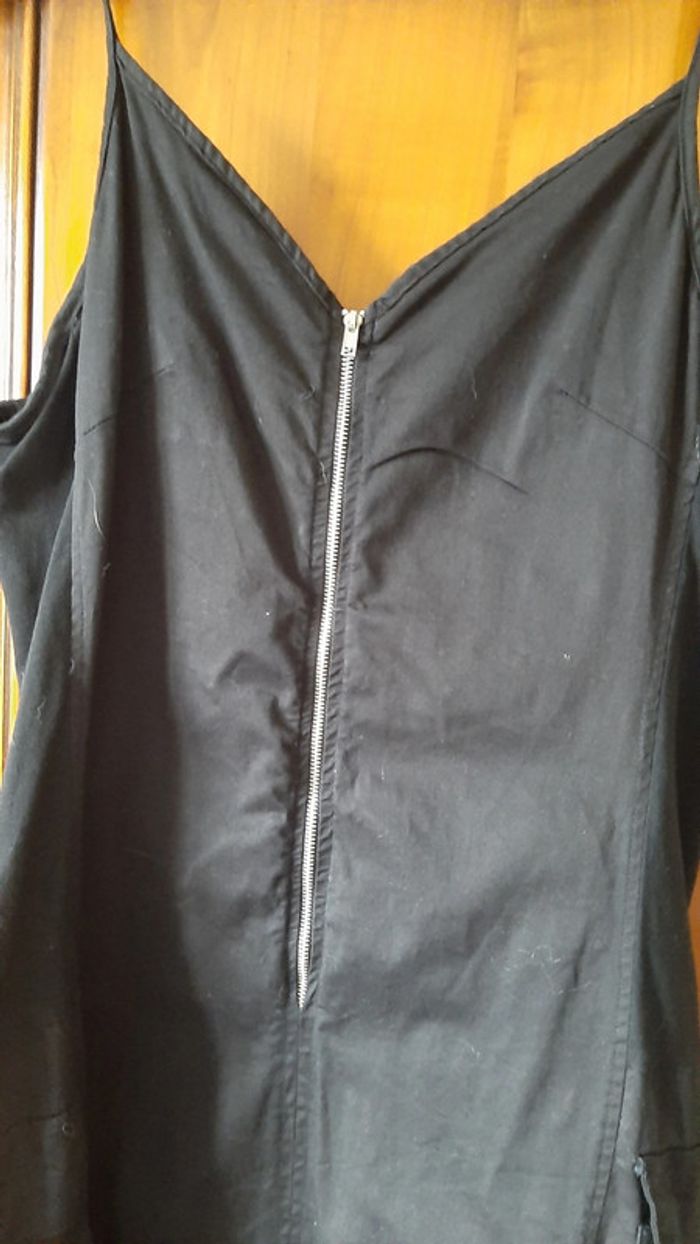 robe sport elastiss, zip pour le decolleté + zip pour ouvrir sur les jambes, fines bretelles, tissu coton sur les cotés et en pointe dans le dos, 2 grandes poches, couleur noire, taille XL, marque Sport VG REGIS TERED