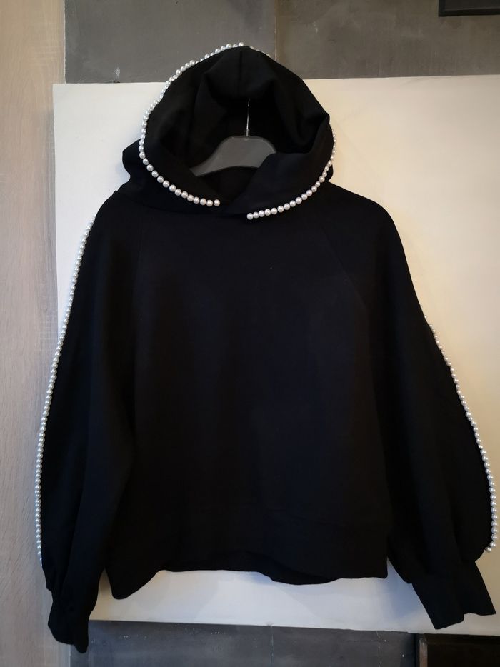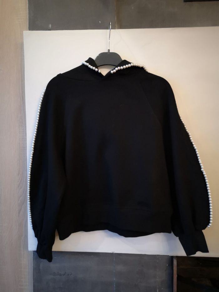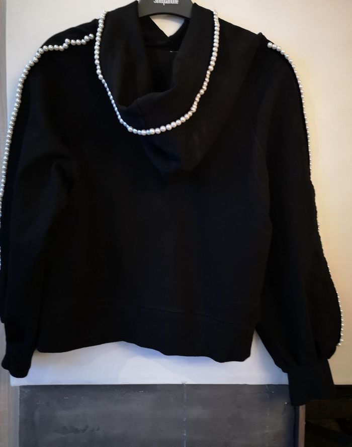 Sweat original avec capuche et poches sur le côté. Perles sur les manches et la capuche. Très bon état. Porté 1 fois. Marque Molly Bracken avec catimini