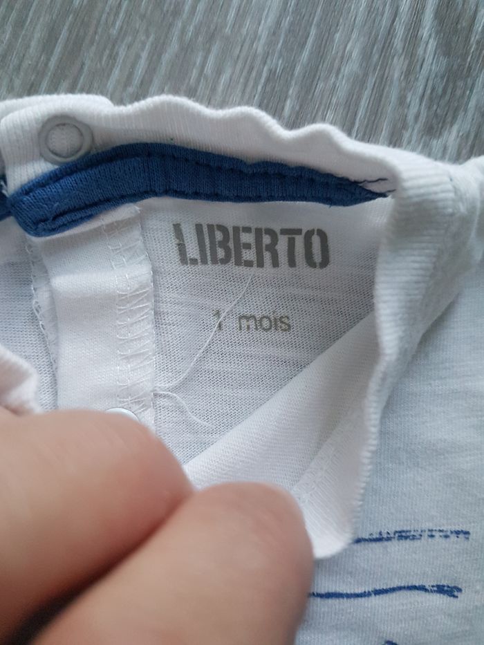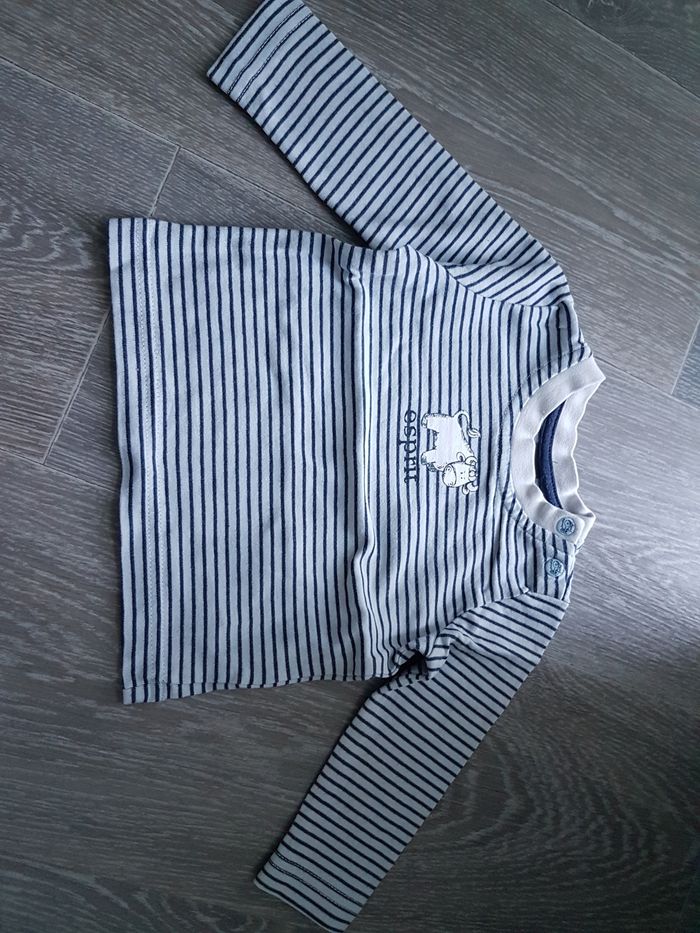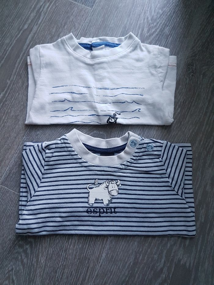 Lot de 2 tee shirt 1 mois, 1 rayé blanc et marine de marque esprit avec 2 pressions sur le côté du col et 1 blanc de marque liberto avec pressions dans le dos.