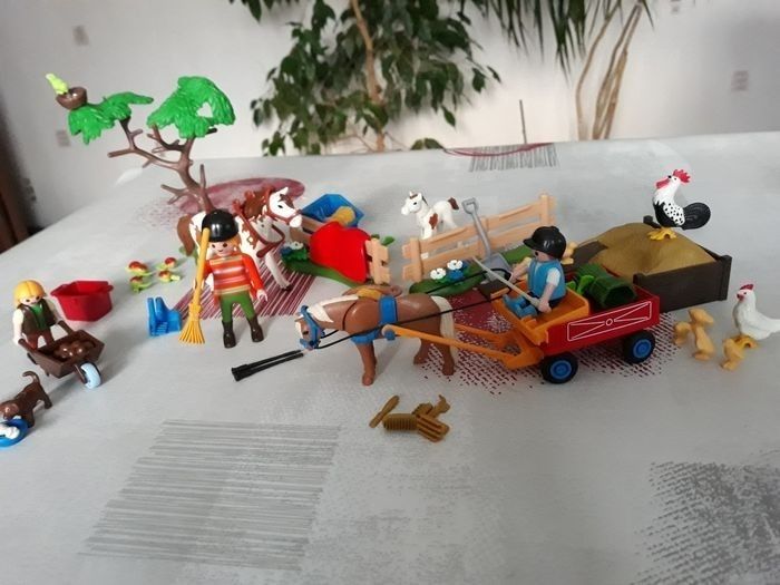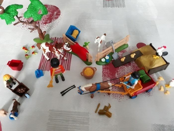 Playmobil ferme équestre issu d'un calendrier de l'avent manque le couvercle du coffre et le décor en carton