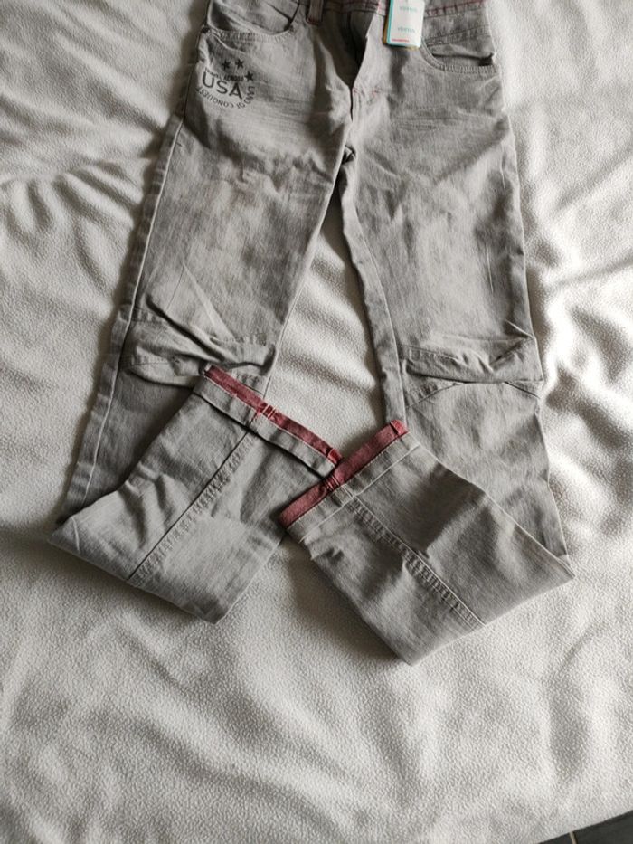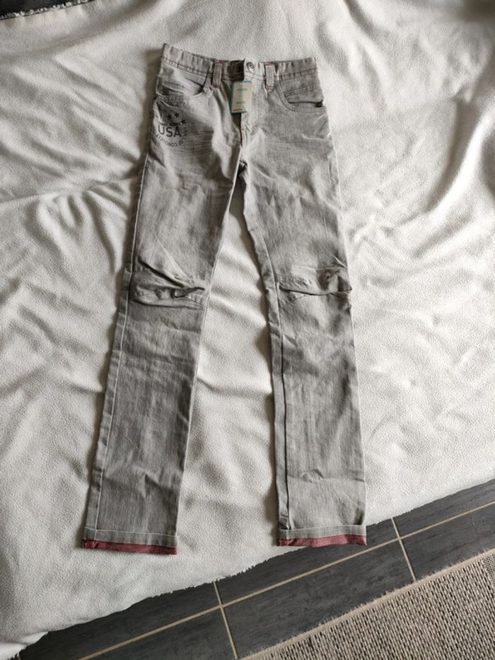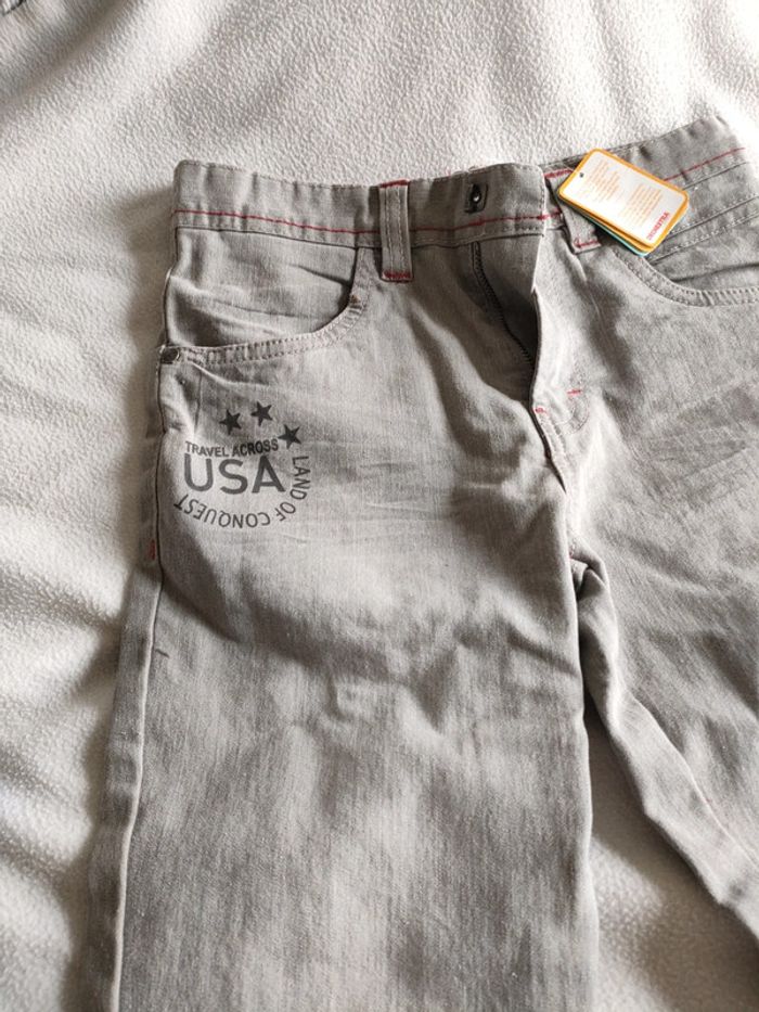 Jean slim stretch orchestra taille 10 ans. Neuf. Gris avec taille réglable élastique.