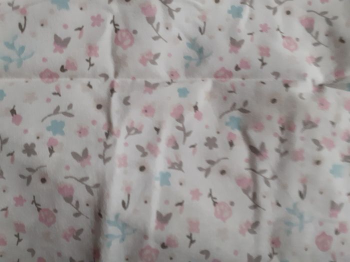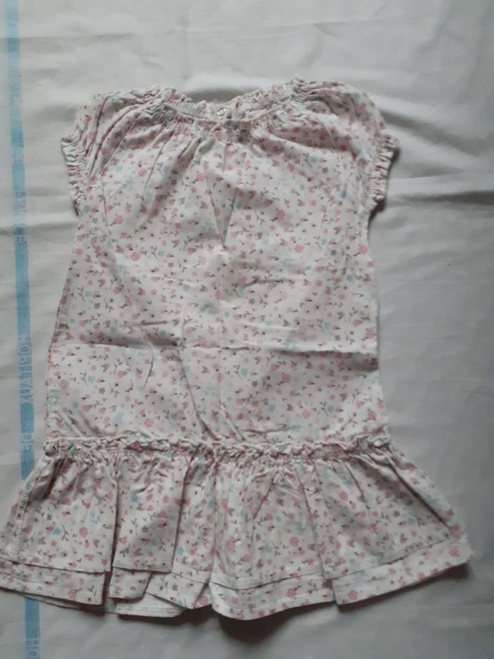 Robe blanche motif petites fleurs roses et bleues claires 18 mois