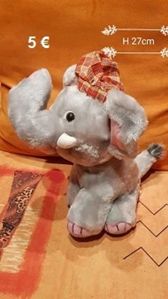 Peluche Éléphant H 27cm Remise activée par lot #VP72_Peluches_neuves