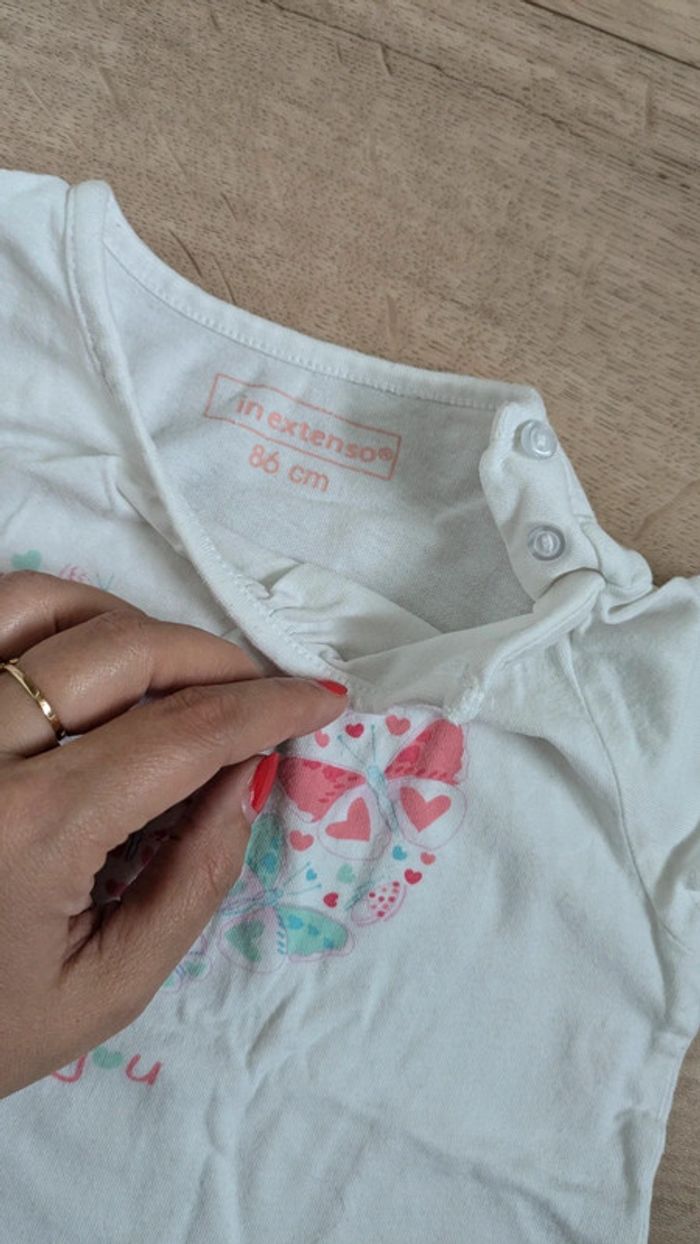 Tee-shirt blanc et rose in extenso 86cm