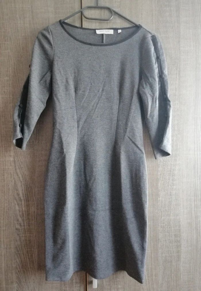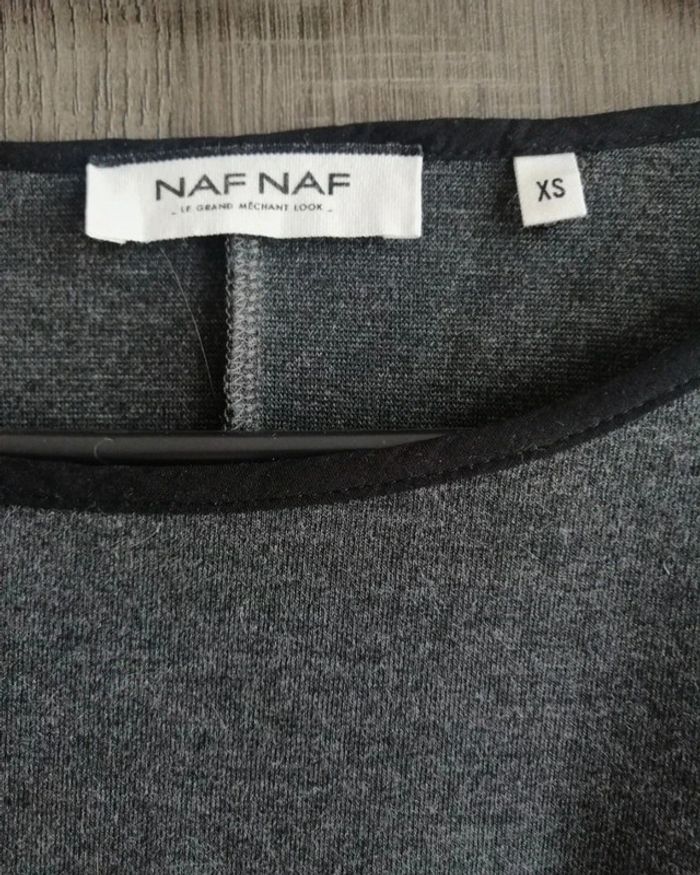Robe Naf Naf grise, taille XS Cintrée Manches 3/4 Comme neuve, portée 1 seule fois