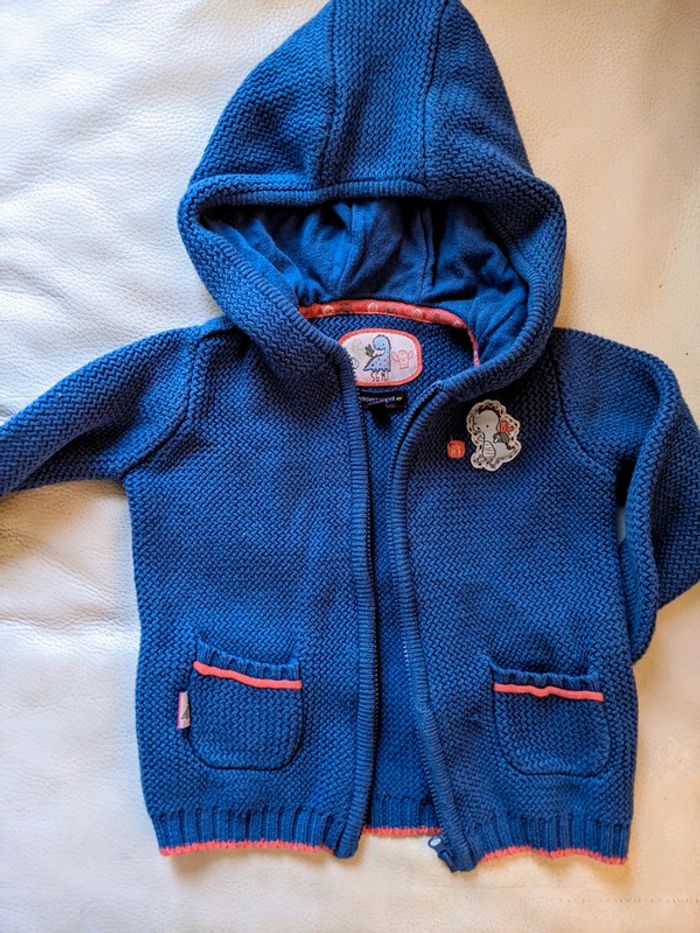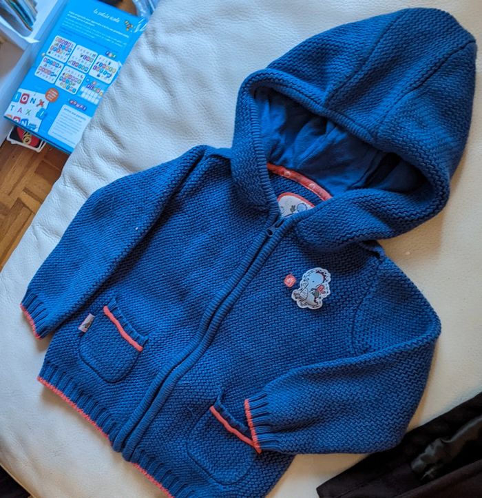 Gilet tricoté à capuche Sergent Major 18 mois 81 cm bleu Très joli porté Très bon état #yipin_bebe_18mois_fille #yipin_bebe_18mois