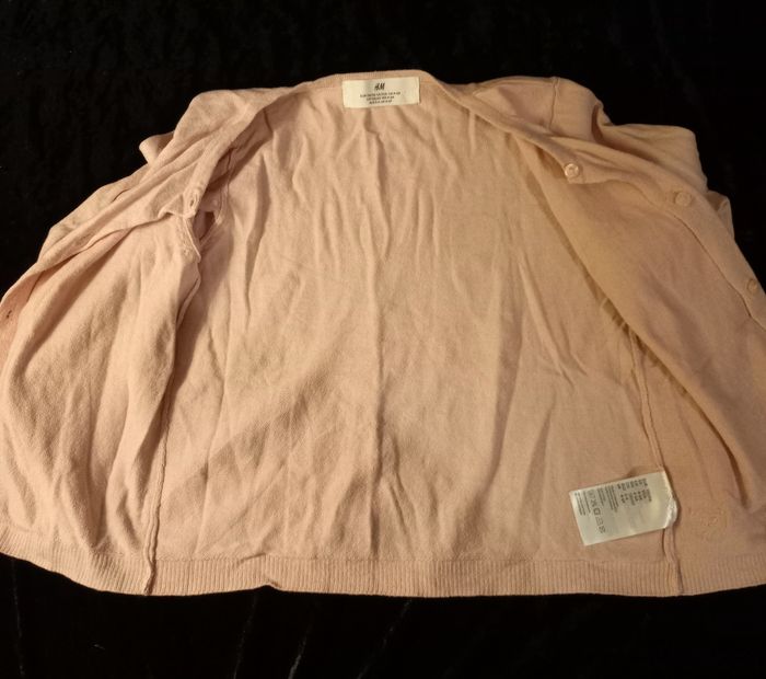 Gilet enfant 4-6 ans,en très bon état couleur rose clair, manches longues, marque : H&M, 100% coton.