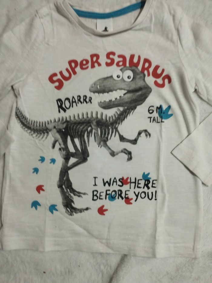 T-shirt manches longues blanc dinosaure - photo numéro 4