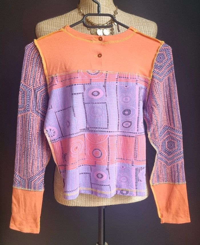T shirt manches longues C414 by Catimini 14 ans Orange et violet Viscose et elasthanne En excellent état