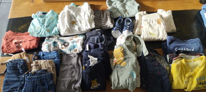Saison Printemps été. 4 turbulettes. 4 pyjamas été en 3 mois. Une veste 3 mois. 1 gilet 3 mois. 2 shorts 1 mois /3 mois. 1 pulls 3 mois 1 pulls 1 mois. Boddys ect ... Plus de détails sur demande possibilité de vendre a l'unité .