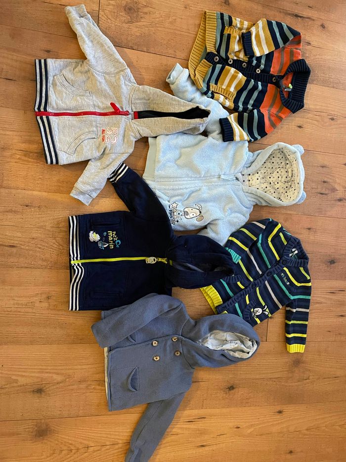 Bonjour, je vend un lors de vêtements garçon en 6 mois. Il y a également une dizaine (voir plus) de body’s en 6 mois que je n’ai pas mis en photo. Pantalon, hauts, vestes, pyjamas et bodys en très bon états. 1€ la pièce. 50€ le lots en comptant les body’s. Pour plus d’informations, n’hésitez pas à me contacter. Cordialement