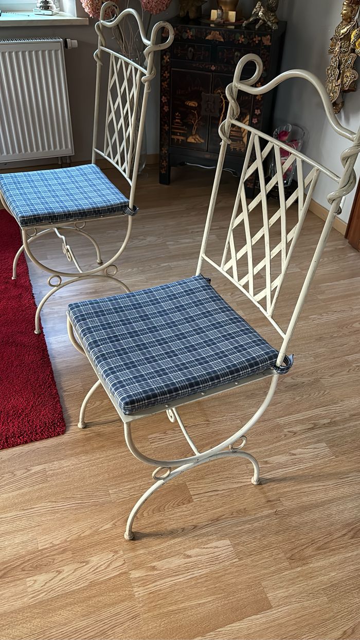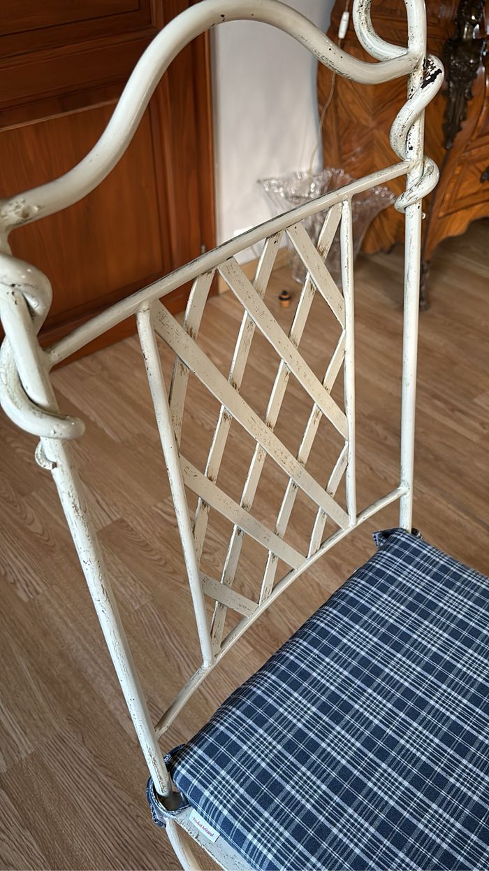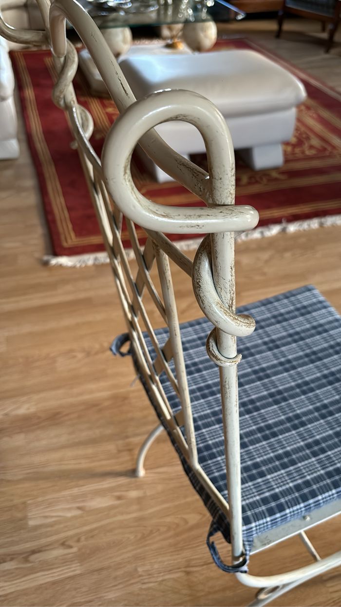 Six chaises Fer Forgé état impeccable avec galette. Le prix est fixe est à récupérer à la porte pas d’envoi. Peut convenir aussi bien dans une salle à manger dans une véranda ou à l’extérieur