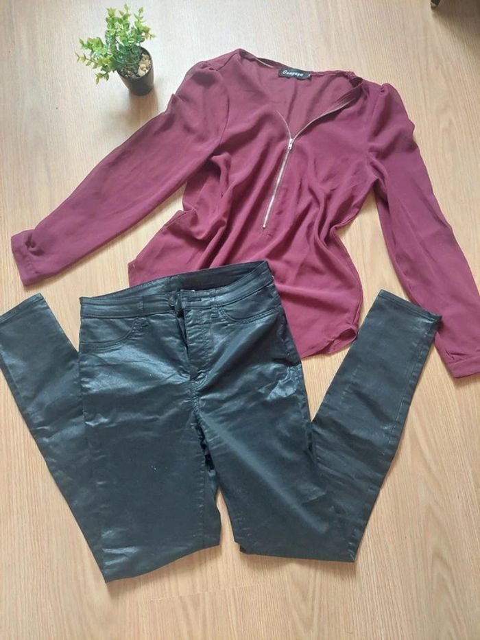 Blouse transparente bordeaux zip T.L (mais taille un M) TBE - photo numéro 1