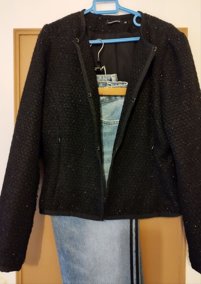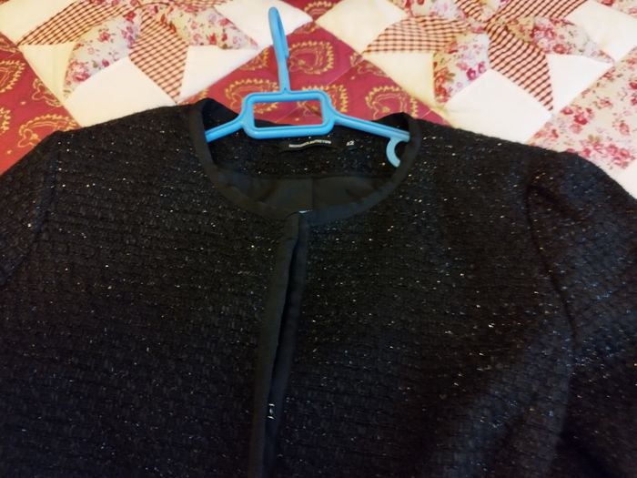 Veste chic et habillée, mise quelques fois deux fois maximum pour les fêtes de fin d'année à Noël. 2 poches sur le côté , pratique pour y glisser le mouchoir ou autre. .