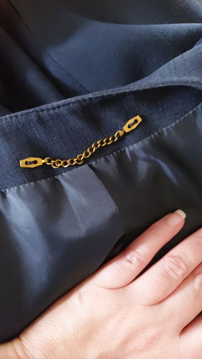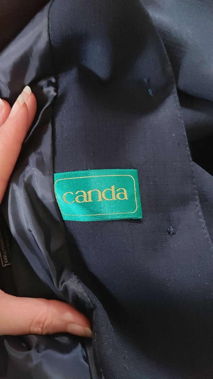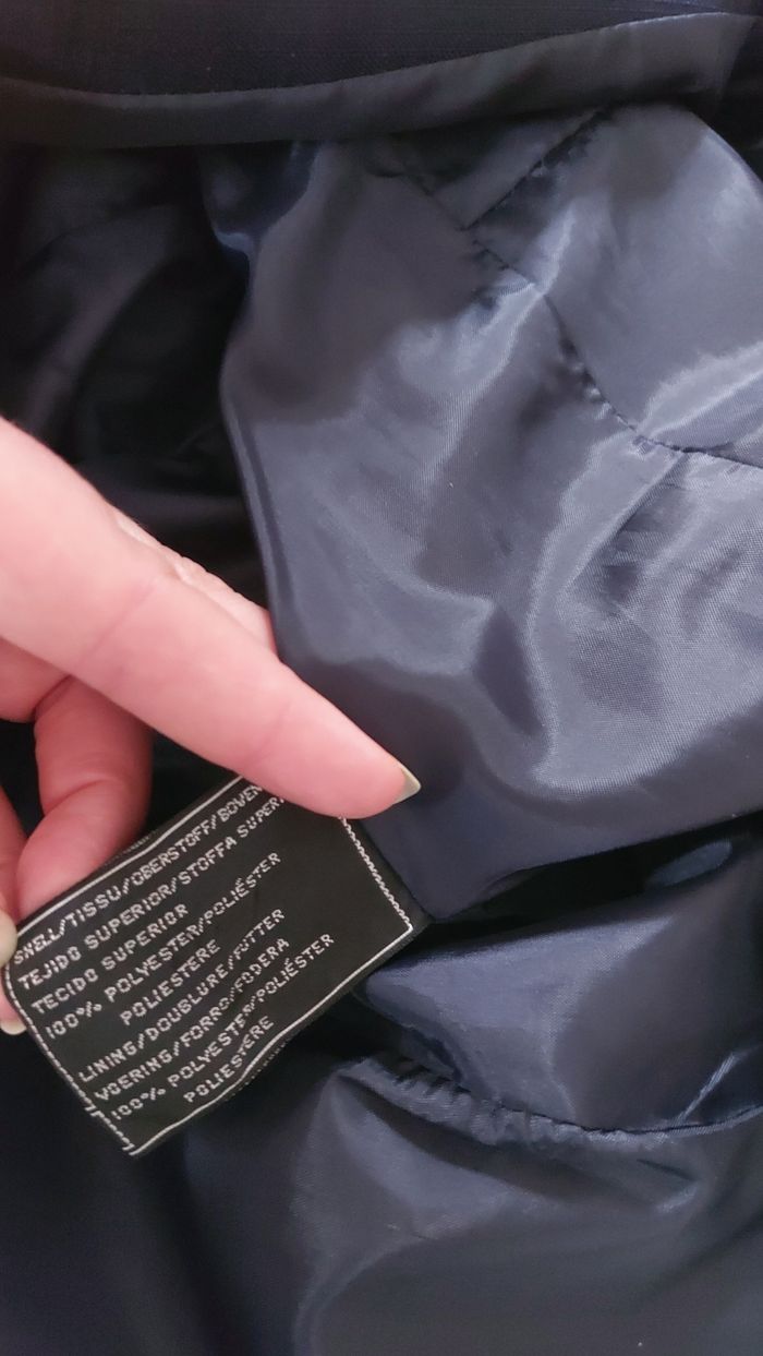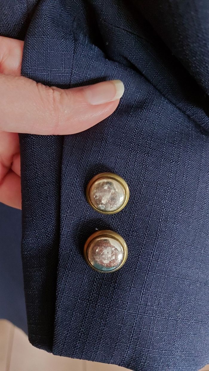 Veste bleue marine, C&A, taille 46. Bon état Sous-bras 53 cm, Longueur 77 cm Un bouton recousu avec un fil de couleur différente mais ne se voit pas