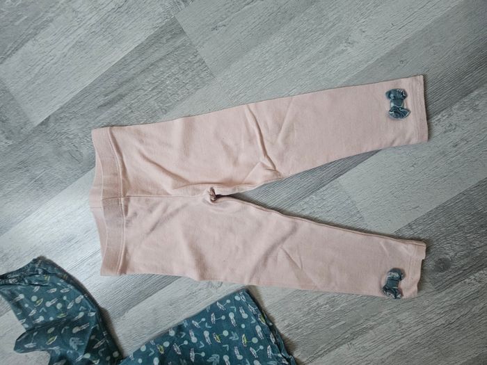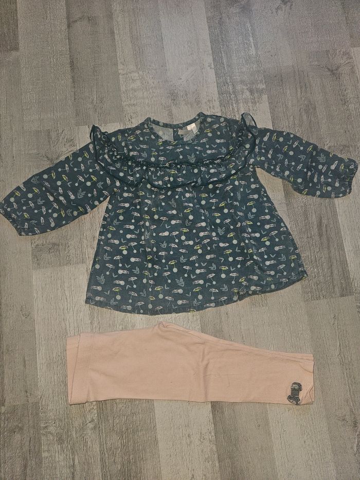 Ensemble mi-saison, tunique et legging assorti. La tunique commence à décoloré à force d'être lavé ; le legging est en très bon état Taille 18 mois