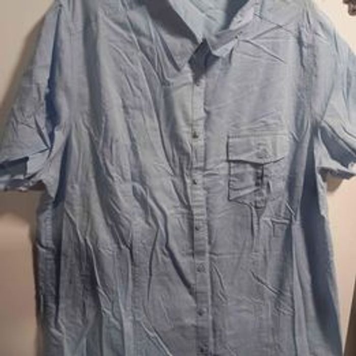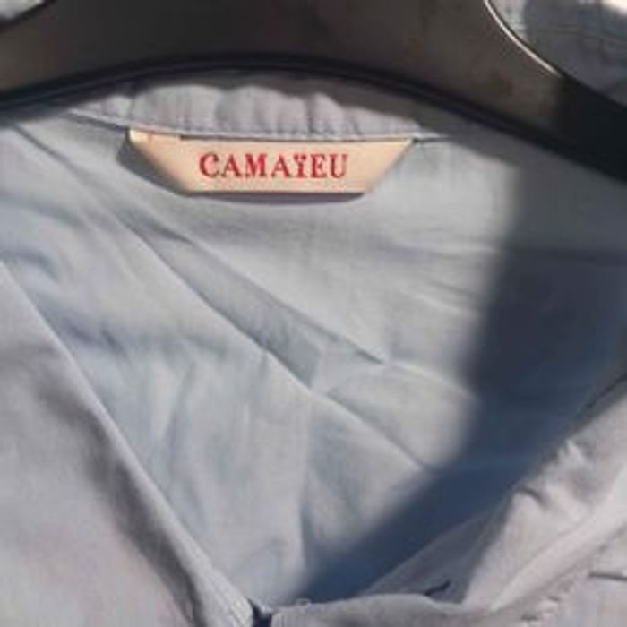 Chemisier manches courtes femmes Marque Camaïeu Motifs poche sur la poitrine Matière 100% coton Taille 46 Couleur bleu ciel Ferme à boutons Dimensions approximative 69cm de long : largeur sous aisselles 58cm : longueur de manches 18cm : largeur d'épaules 40cm En très bon état