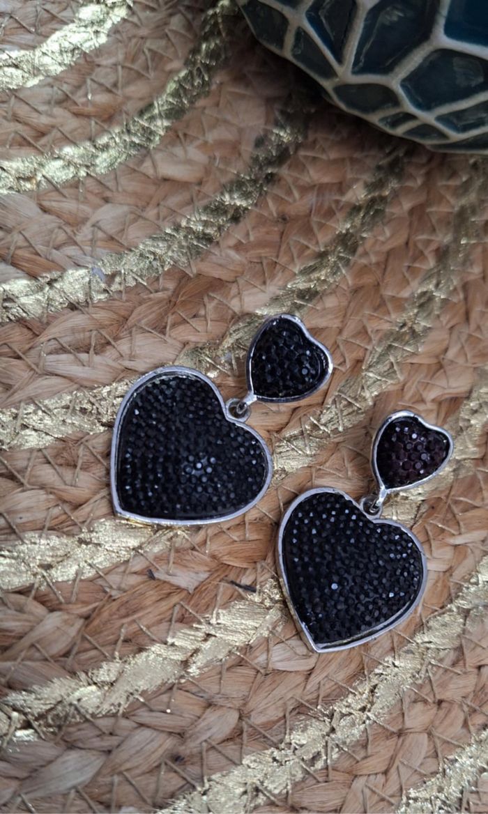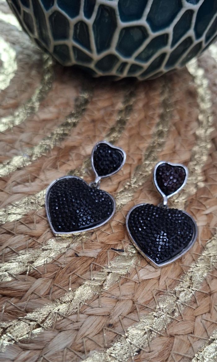 BIJOUX N°265 boucle d oreille Fantaisie Argenté/ strass noir Cœur Accroche Clou Neuf 2€ #kelly_bijoux