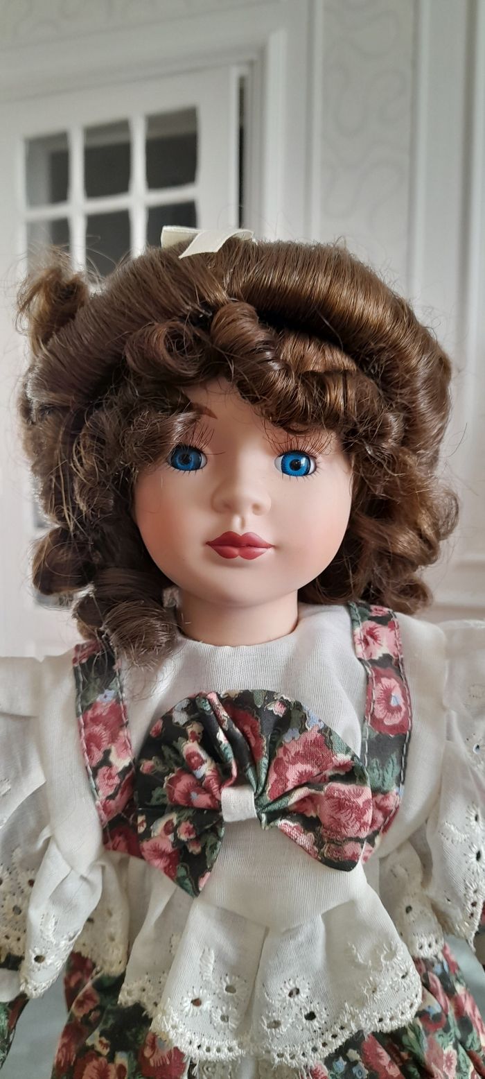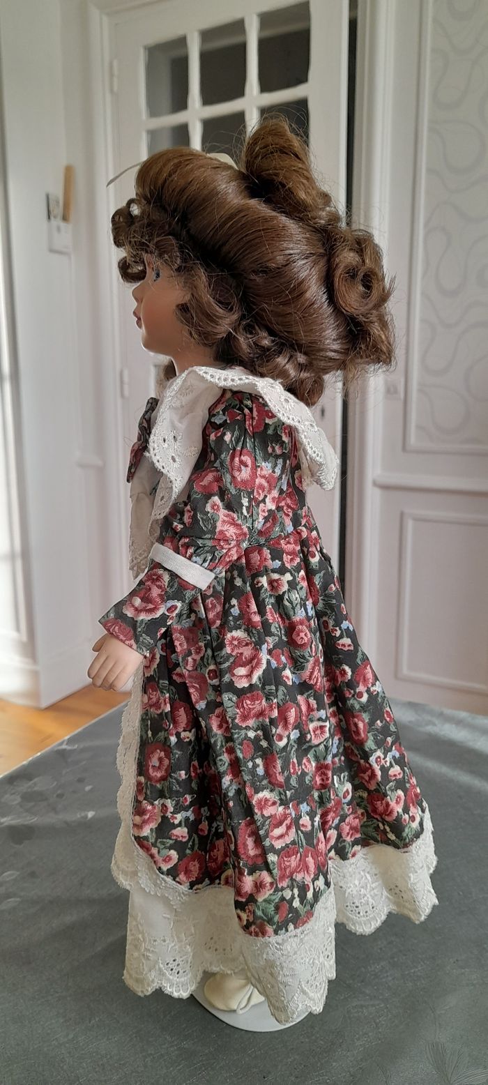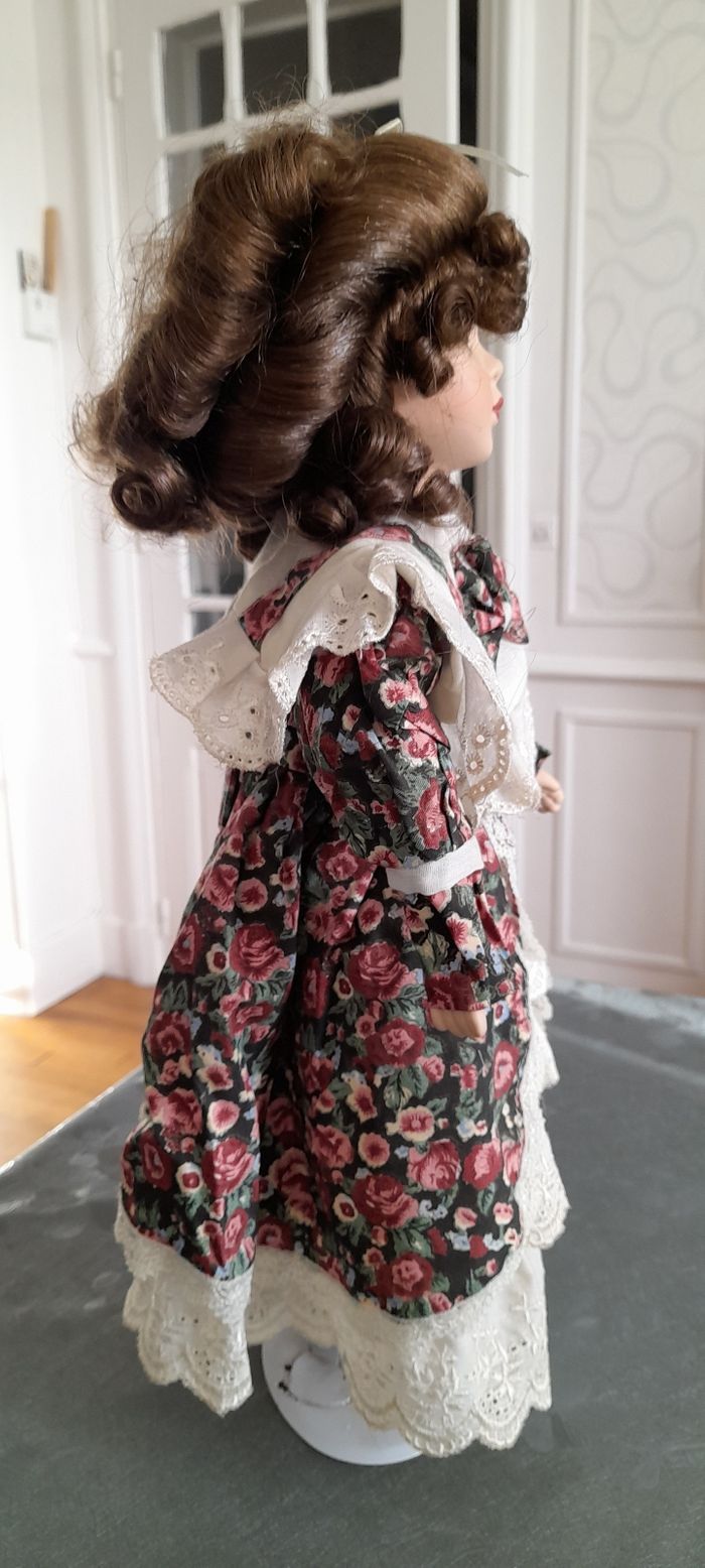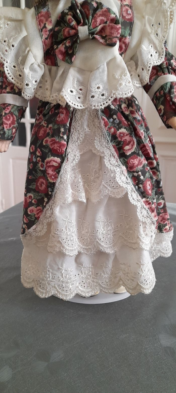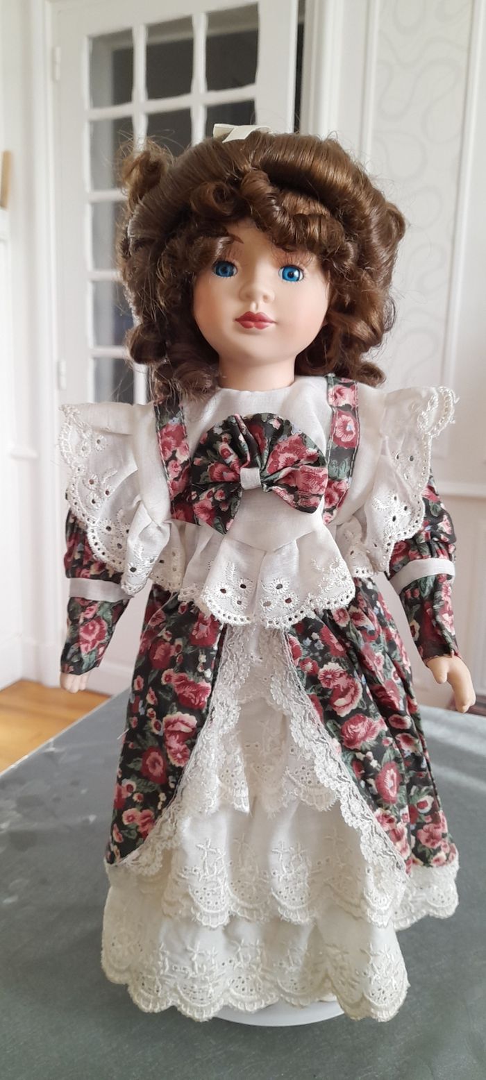 Poupée en porcelaine avec sont socle 43 cm environ Très très bon état
