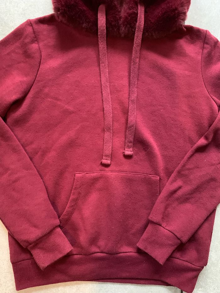 Superbe sweat bordeaux avec capuche fausse fourrure taille XS - photo numéro 1