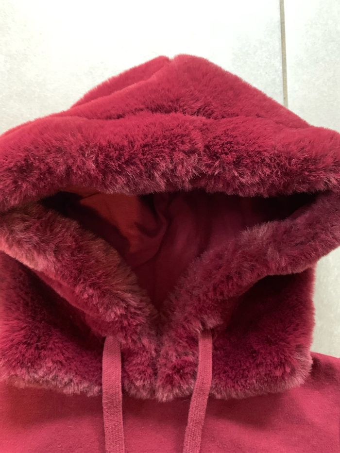 Superbe sweat bordeaux avec capuche fausse fourrure taille XS - photo numéro 4