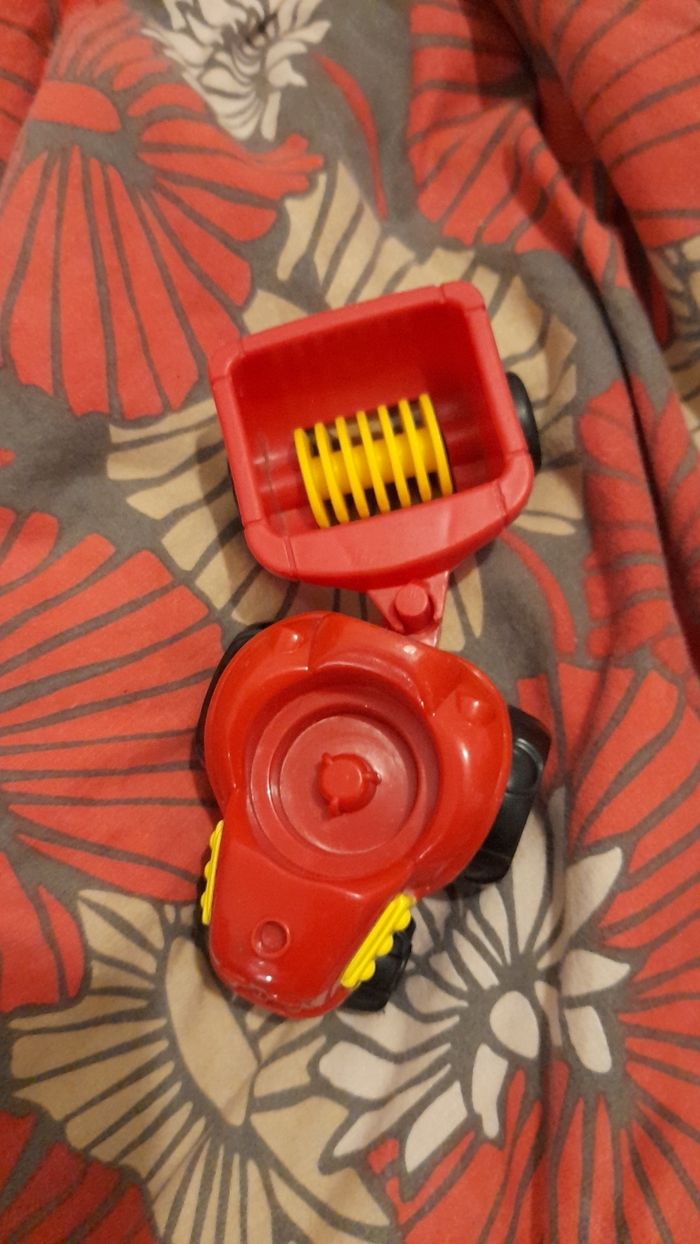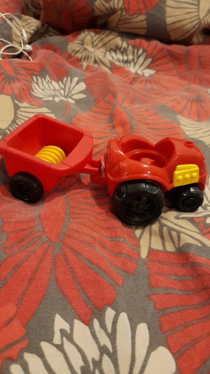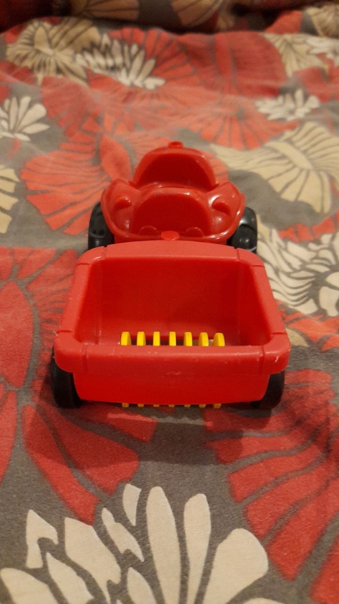 Tracteur et remorque rouge en plastique bon état.