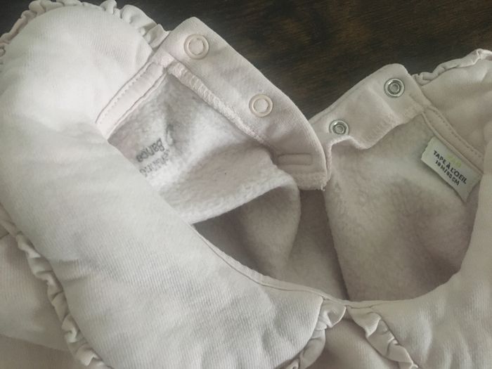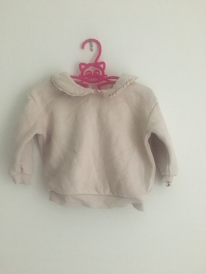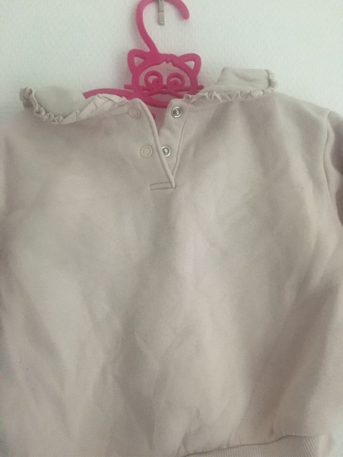 Pull tape à l’œil acheté cet été 18 mois Rose pastel Marque du prénom de ma fille dans le pull (tampon encreur)