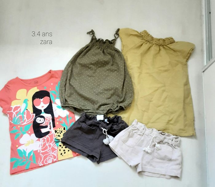 . Lot fille robe. Shorts. Sarouel. ZARA. TEE-SHIRT SHIRT. 3 .4 ans