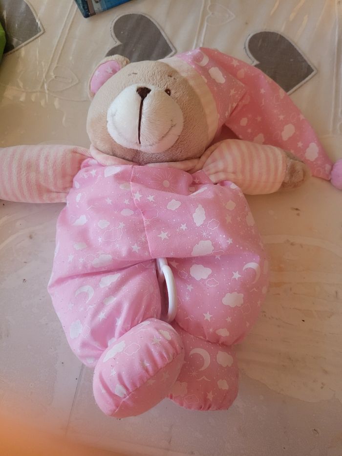 Doudou  ours rose boîte à musique - photo numéro 1