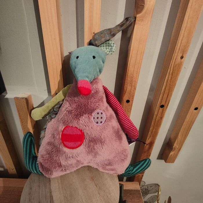 Voici une adorable peluche de la marque Moulin Roty, de la collection 'Les Jolis Pas Beaux'. Cette souris toute douce et toute ronde est d'une jolie couleur mauve. Avec ses grands yeux et son nez rouge, elle a un charme fou ! Parfaite pour câliner et jouer, cette peluche fera le bonheur des petits et des grands. Venez découvrir ce compagnon de jeu tout doux et tout mignon ! - Marque : Moulin Roty - Collection : Les Jolis Pas Beaux - Couleur : Mauve - Type : Peluche souris - boîte à musique fonctionne parfaitement - 25 cm environ Toutes les étiquettes sont présentes 20 euros Envoi en relais