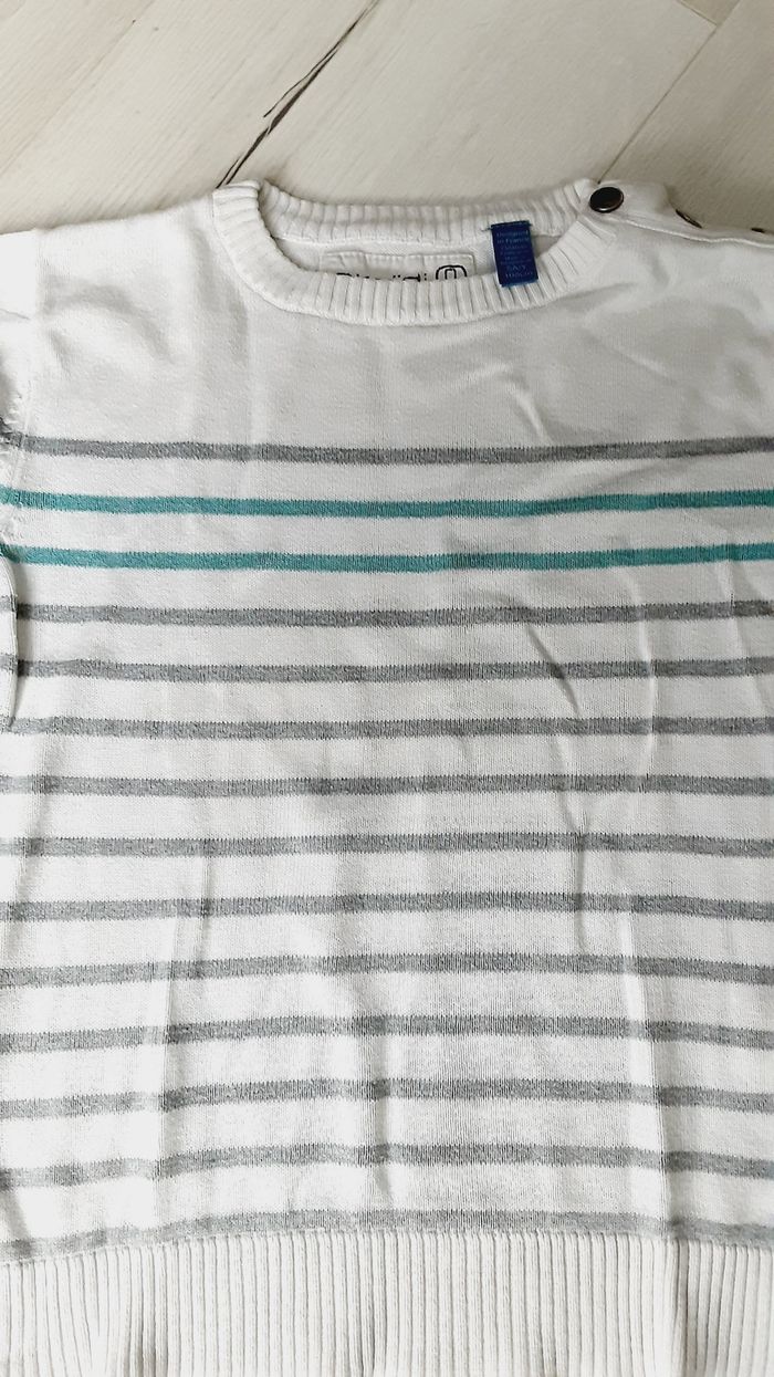 Vêtement garçon pull rayé blanc et gris Okaïdi 5 ans - photo numéro 1