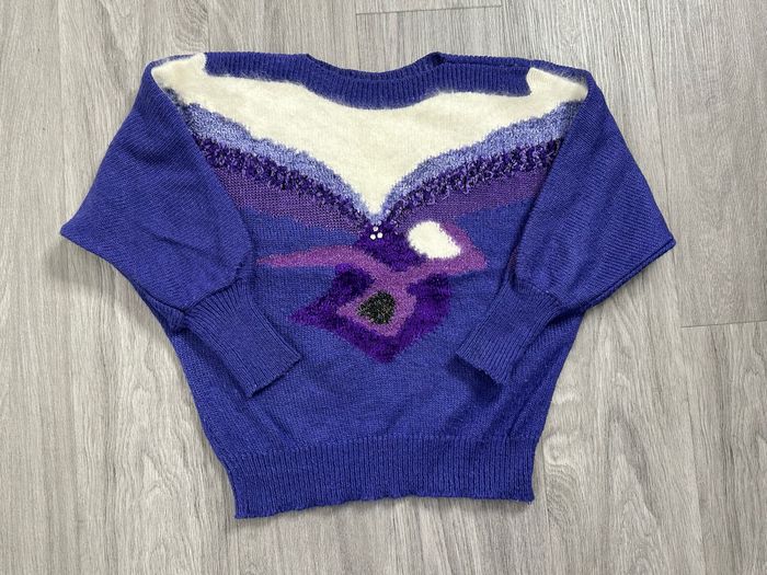 Pull en angora violet mauve lila et blanc Vintage T40/42 L/XL - photo numéro 1