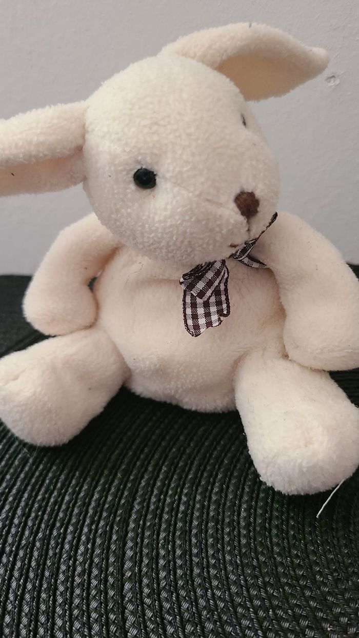 doudou lapin flo vichy marron assis joual - photo numéro 4