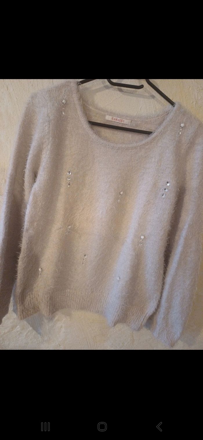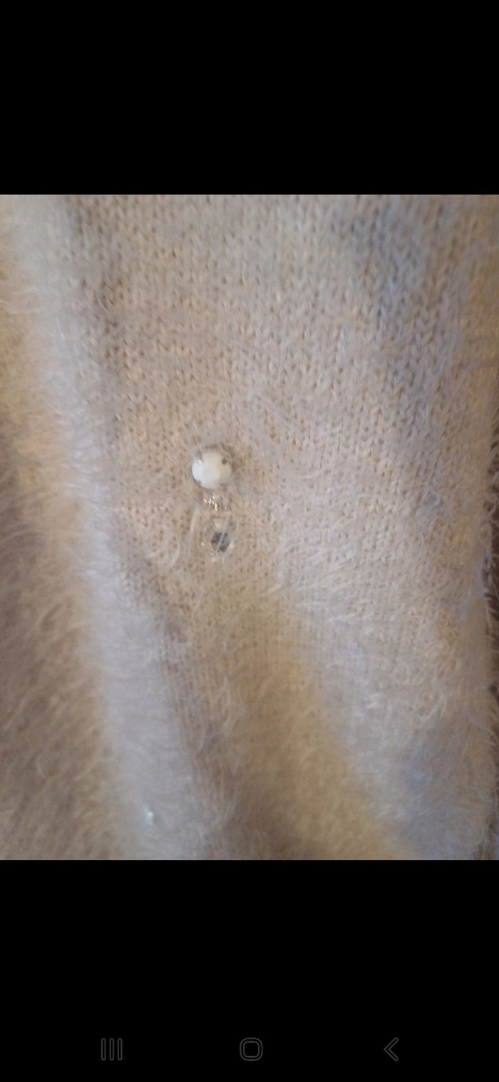 Pull avec strass sur le devant. Avec poils longs