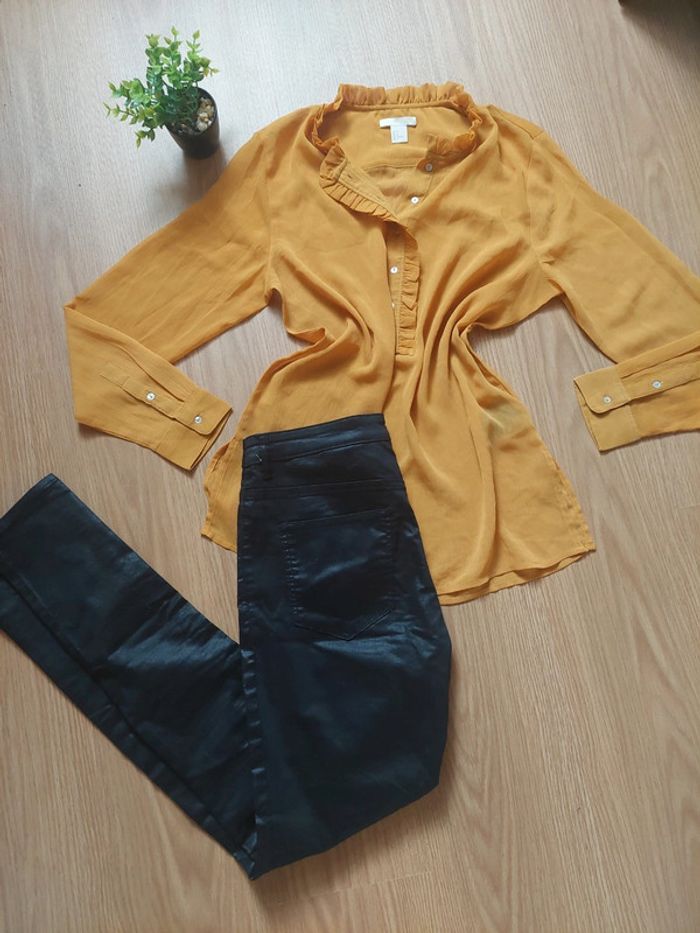 〰️ Blouse, transparente, moutarde, légère ✔️ à porter avec un pantalon simili cuir noir, à retrouver aussi en vente dans mon dressing 🌸Etat: TBE 🌸Marque: H&M 🌸Taille: T.M 🏷 Les réductions sur les lots sont activées ⏳️ Pas de réservation ✂️ Les colis sont soigneusement emballés 🎁 Un petit cadeau sera mis dans chaque colis #virginie63zfemme #virginie63ztaille38 #virginie63zhm #virginie63zblouse