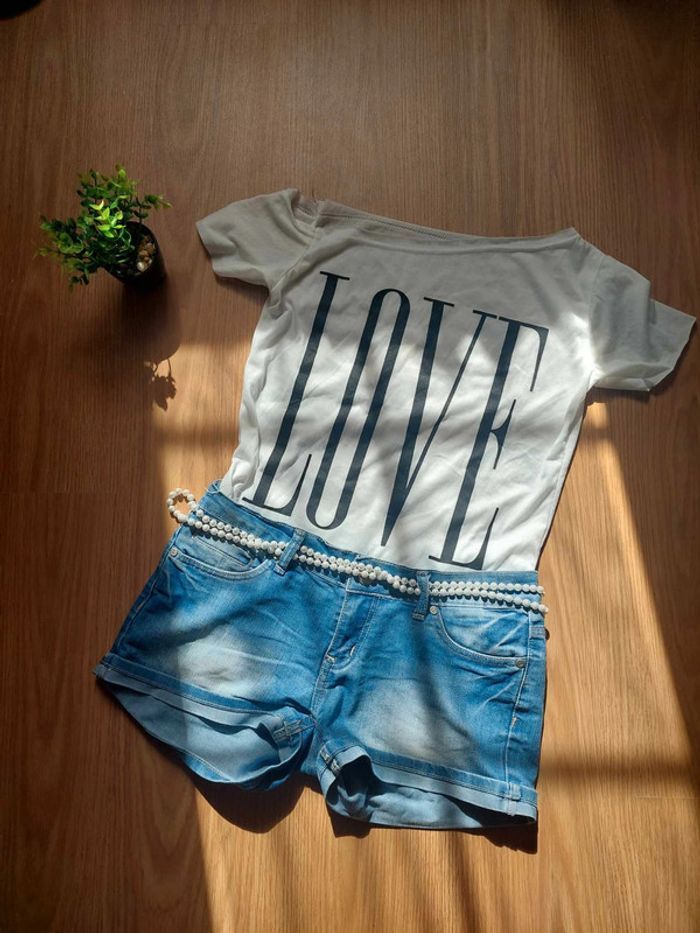 〰️T-shirt manches courtes, blanc avec écrit "love" en noir, le t-shirt descend un peu plus sur l'épaule sur un côté ✔️à porter avec un short en jean, à retrouver également en vente dans mon dressing. 🌸Etat : TBE 🌸Marque : acheté dans une boutique indépendante 🌸Taille : T.U (pas d'étiquette) 🏷 Réductions sur les lots activées ⏳ Pas de réservation ✂️ Les colis sont emballés soigneusement 🎁 Un petit cadeau sera mis dans chaque colis #virginie63zfemme #virginie63ztshirt #virginie63ztailleunique #virginie63zété