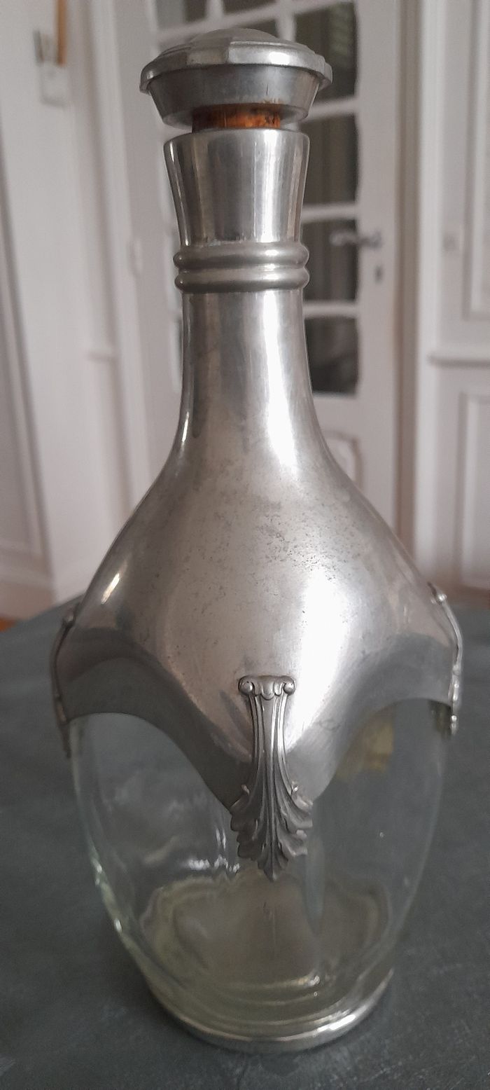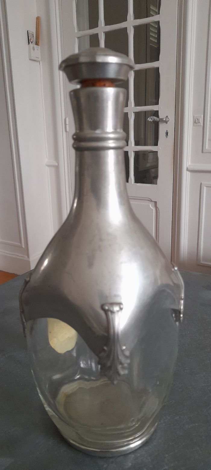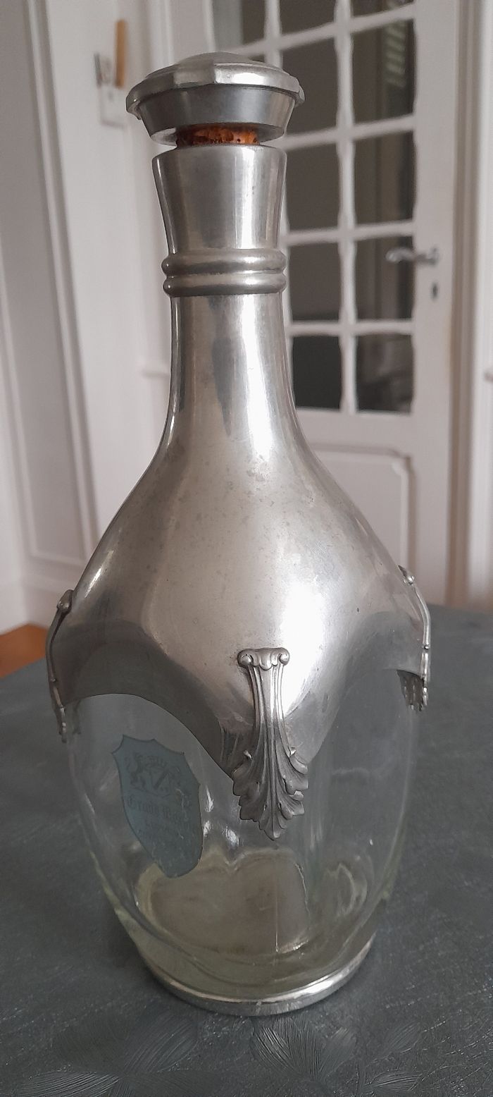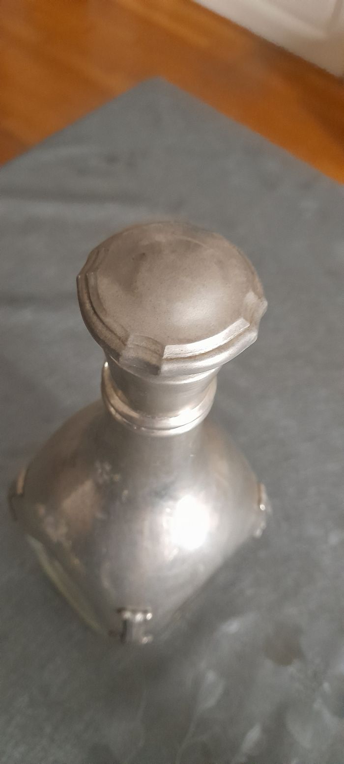 Carafe en étain avec son bouchon/ son étiquette et son poinçon Très très bon état juste lège rayures