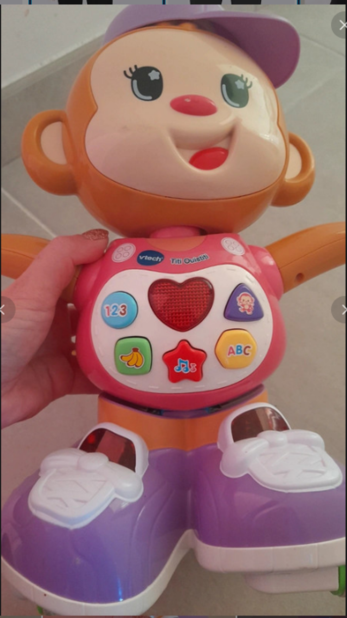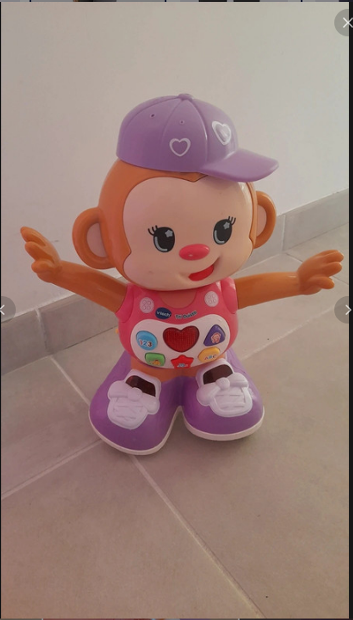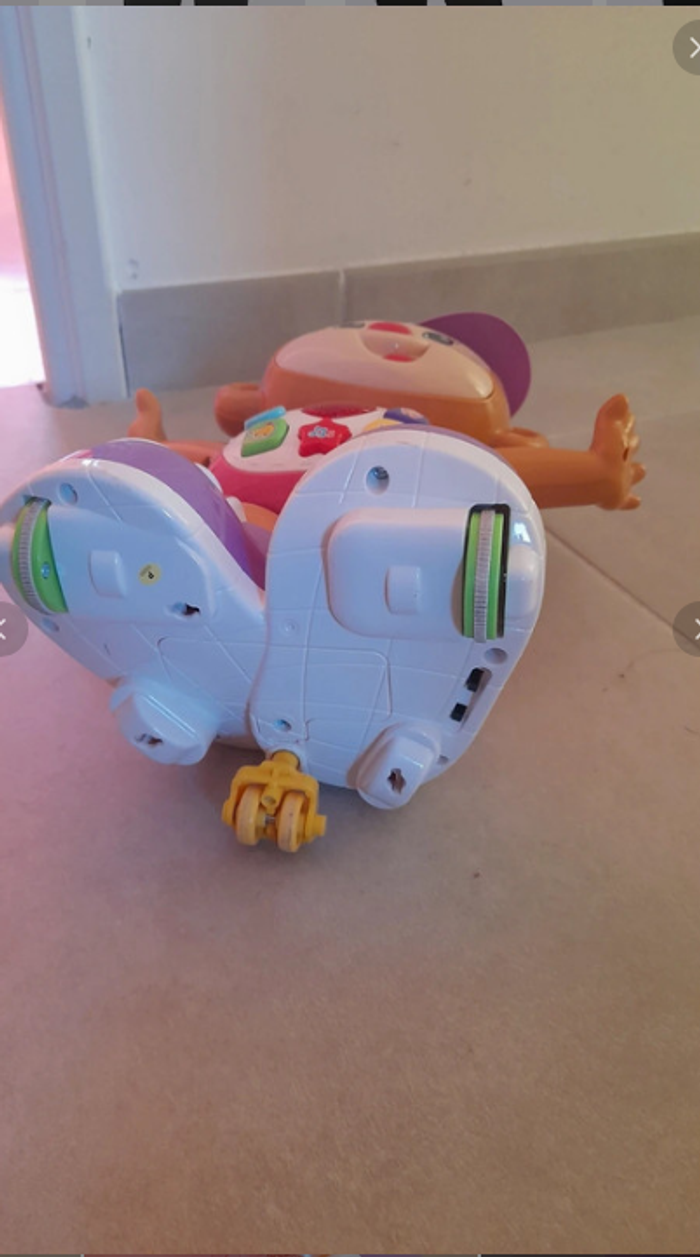 Jouet d'éveil Titi Ouistiti Lumière, sons. Le jouet se déplace grâce aux roulettes.