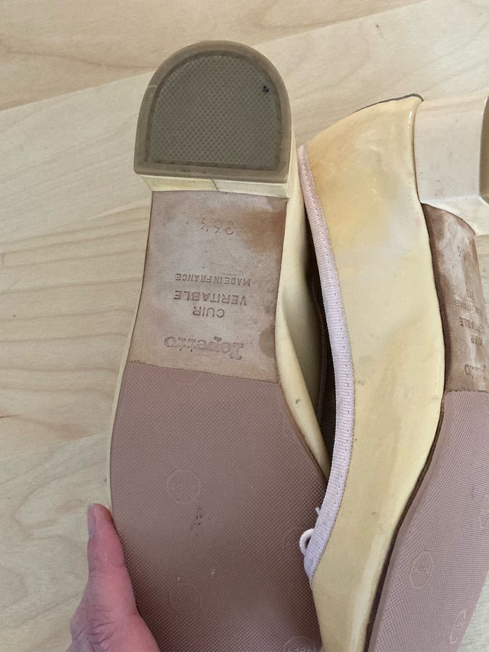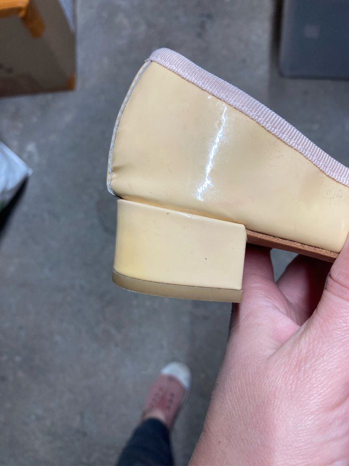 Ballerines repetto « Camille » couleur nude taille 36,5, talon de 3,5cm. Jamais portées mais stockées avec les chaussures de la famille. Elles sont en très bon état mais ont été en contact avec la lumière donc on peut-être un peu perdu de leur couleur. Cela ne gêne en rien leur utilisation. Prix négociable dans la limite du raisonnable